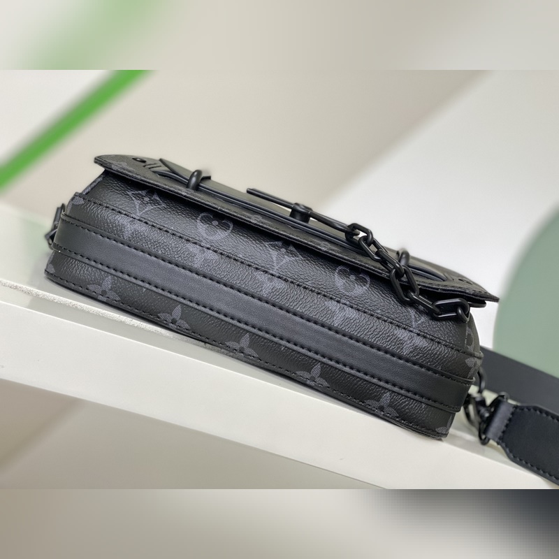Haiyuan Foreign Single Du Shijia Shot M45585 Tämä uusi Steamer-lähettilaukku ruokkii brändin perinteiset elementit New Classics -sarjaan upealla muodolla. Ikoninen Monogram Eclipse -kangas täydentää klassisia elementtejä, kuten Steamer-tyylistä ketjua. Se on varustettu irrotettavalla olkahihnalla, joka helpottaa kantamista. Vetoketjutaskussa on runsaasti säilytystilaa, etutaskun läppä ja magneettilukko varmistavat tavaroiden turvallisuuden. Mitat: 23,5 x 17 x 6 cm