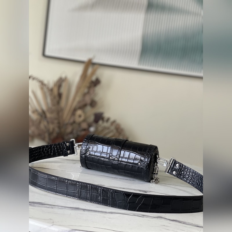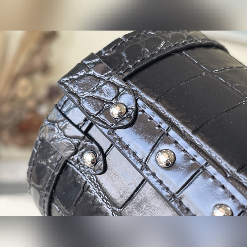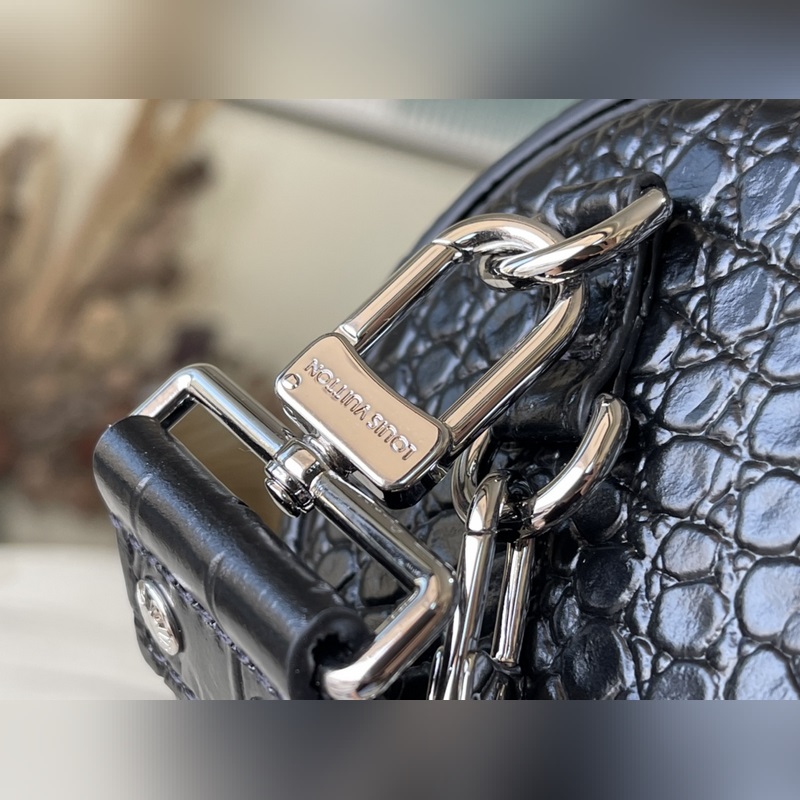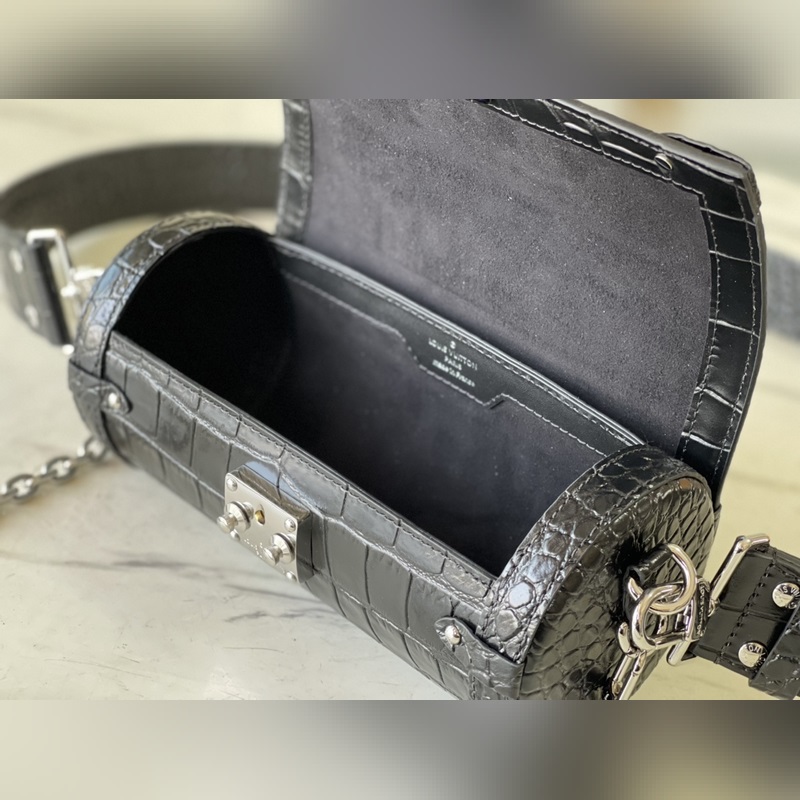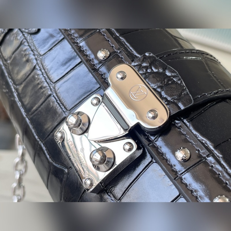 Tyylinumero: M57835 Musta krokotiilikuvioinen käsilaukku Käsilaukku on valmistettu kohokuvioidusta nahasta ja koristeltu metalliniiteillä ja S-lukkohauilla. Se tuo nykyaikaista tyyliä perinteiseen tien tyyliin. Puolikovaa patonkilaukkua on helppo pitää, ja sitä voidaan käyttää myös olkapäällä tai poikkivartalolla olkahihnan avulla. Koko: 19*9*9cm