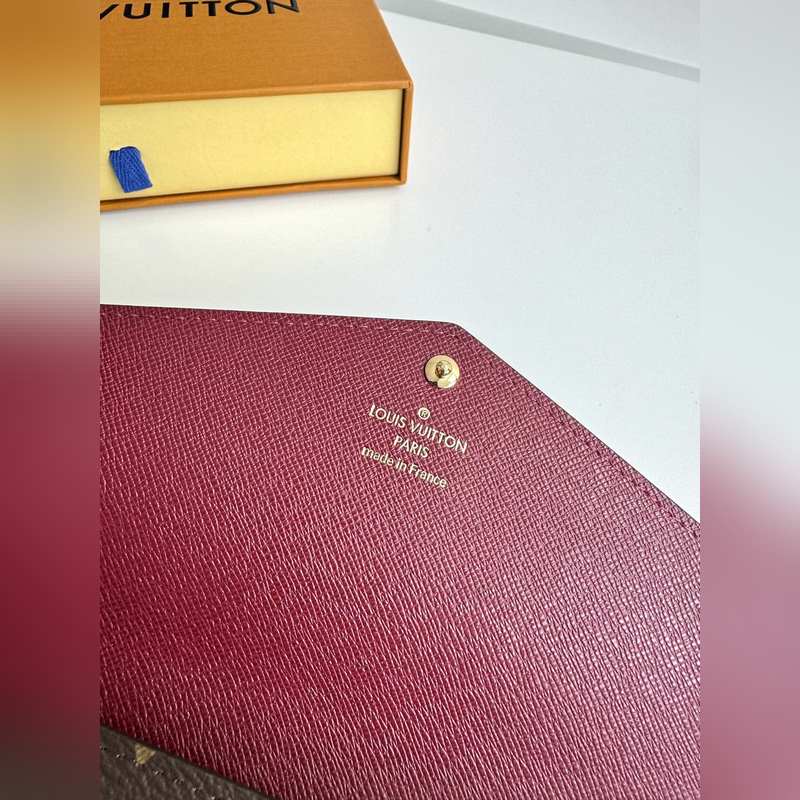 Merentakainen alkuperäinen M60531 violetti punainen eksklusiivinen real shot Tämä kirjekuorilompakko on valmistettu tyylikkäästä Monogram-kankaasta, ja siinä on ainutlaatuinen ja hieno sisustus, ja siinä on erilaisia taskuja ja luottokorttipaikkoja. Koko: 19 × 9,5 cm