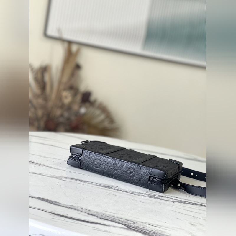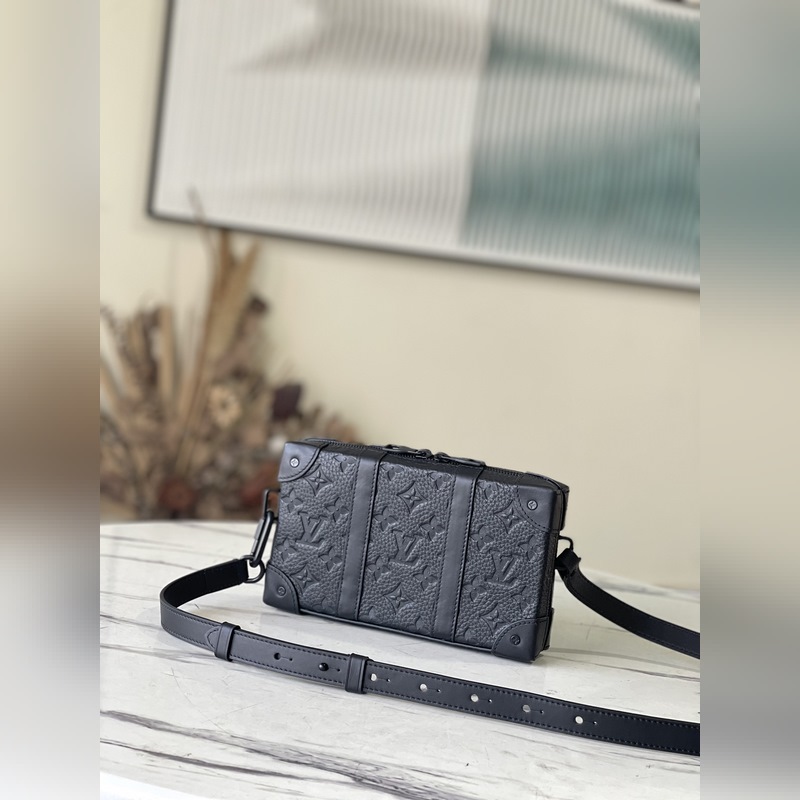 Tyyli: M80224 Laukku on muotoiltu kompaktiin, neliön muotoiseen kohokuvioidusta T-nahasta, jonka nahkaiset kulmat ovat saaneet vaikutteita merkin perinteisistä arkuista. Kiinnitä olkahihna, jotta voit käyttää sitä mukavasti vartalon yli. Mitat: 22,5 x 14 x 5 cm