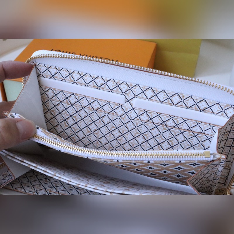 Tämä käytännöllinen Monogrammi-kangaslompakko avautuu ja sulkeutuu vetoketjulla ja siihen mahtuu seteleitä, kolikoita ja asiakirjoja jne. 19 x 10 x 1 cm (pituus x korkeus x leveys) – 8 luottokorttipaikkaa – Avoin setelilokero – Vetoketjullinen kolikkolokero ja -portit 2:lle taskut – Kiiltävät kultaiset metallitarvikkeet