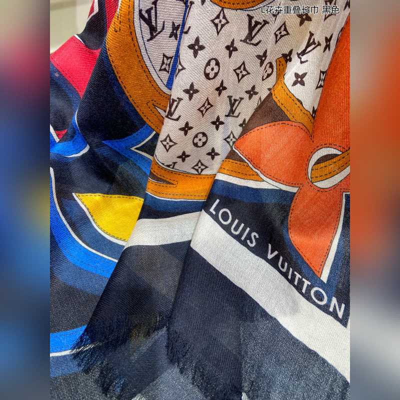 Cashmere huivi. Vasta-sama. Todella pidä siitä. L-kukainen päällekkäinen huivi. Louis Vuittonin klassinen Monogrammi-kuvio värikkäillä reunuksilla lisää upeaa tyyliä. Erittäin suositeltavaa. Tämä koko ei ole liian suuri tai liian pieni, erityisen helppo yhdistää. Laatu on super hyvä. Ymmärrät huippulaadun, kun saat sen. Huippuyksityiskohdat ovat mitä näet. Raskaan sarjan tarjous. VI:n asiakkaiden on ostettava se. Koko: 110*200cm 100% kashmir