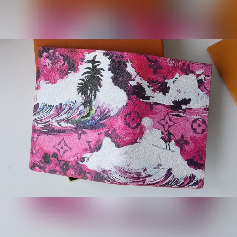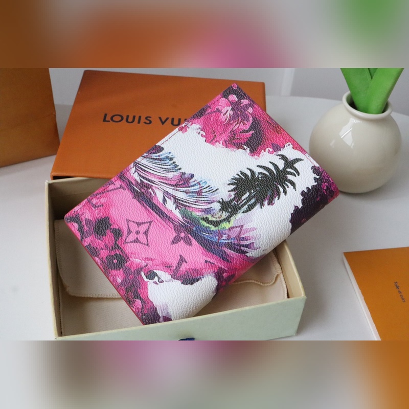 Tämä passipidike M83479 on valmistettu Monogram Surfinin päällystetystä kankaasta ja koristeltu trooppisilla printeillä, mikä lisää matkoihisi tyylikkään ilmeen. Värikkäät printit on kerrostettu luomaan hienostuneen kuvion, joka on täynnä kesätyyliä. Telineessä on neljä sisäistä käyntikorttipaikkaa ja kaksi avointa taskua muita tavaroita varten passin lisäksi.
