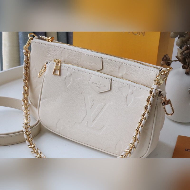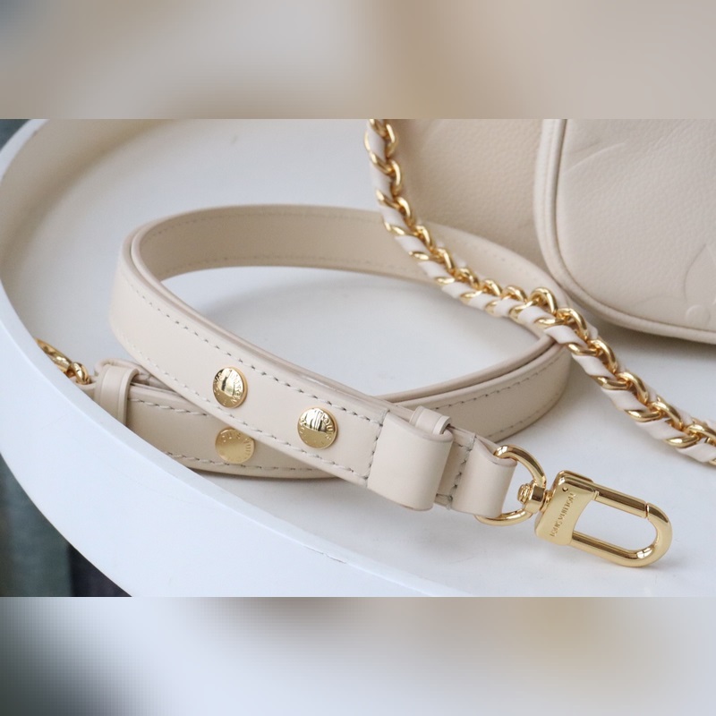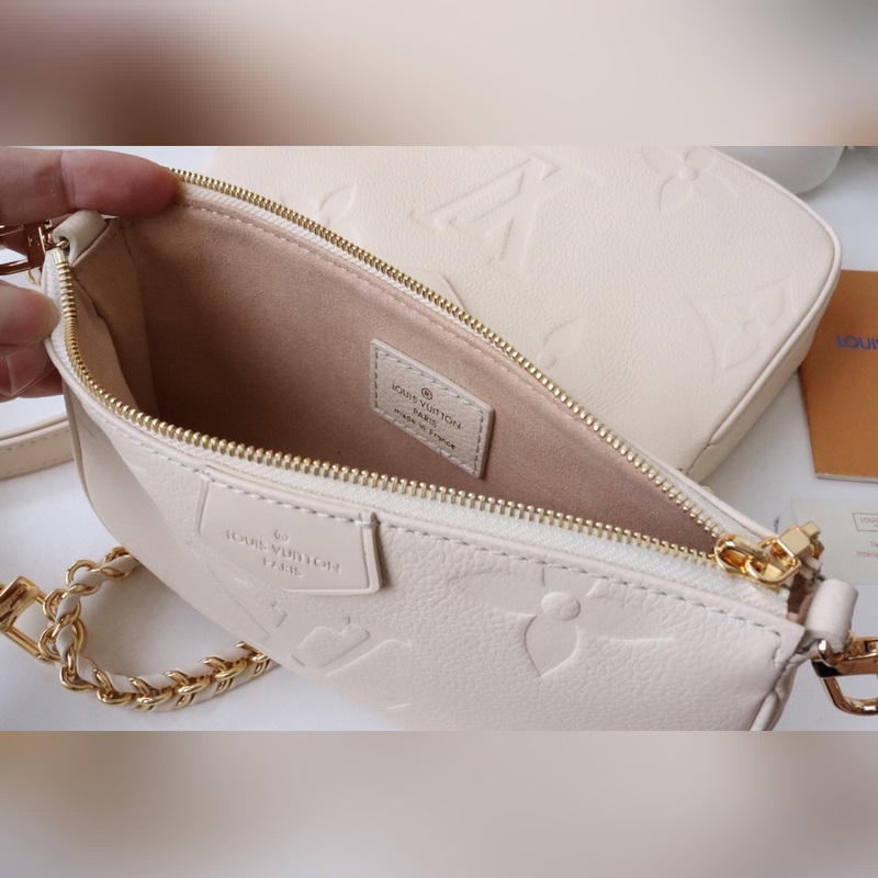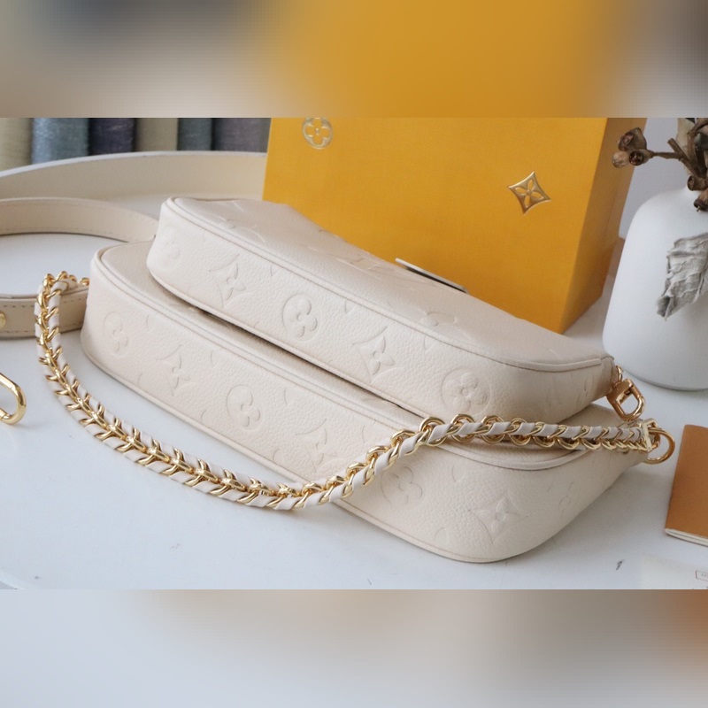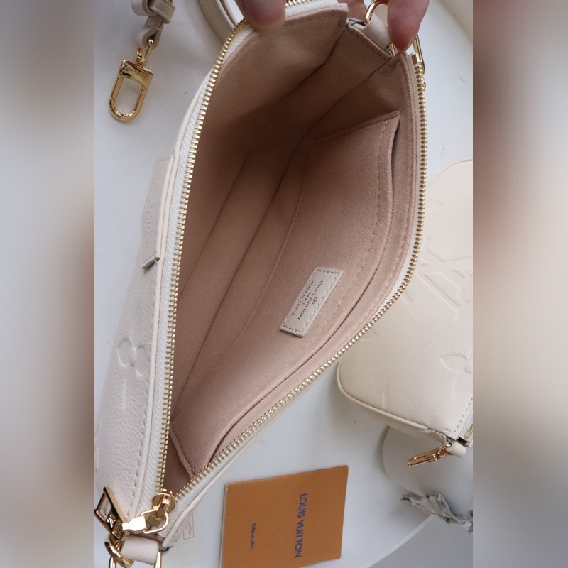 Kolme yhdessä dynaaminen muotoilu Monogrammikankaalla, jossa on useita taskuja ja osastoja. Säädettävä kultaketju ja Louis Vuitton jacquard -olkahihna tarjoavat useita kantotapoja, mukaan lukien crossbody. Mitat: 24 x 13,5 x 4 cm