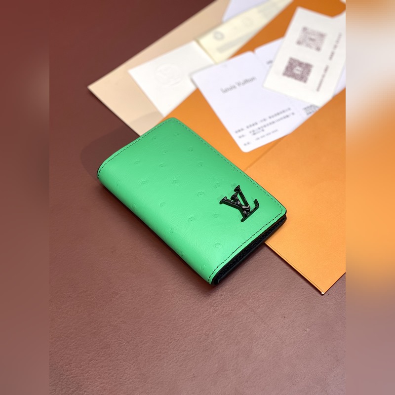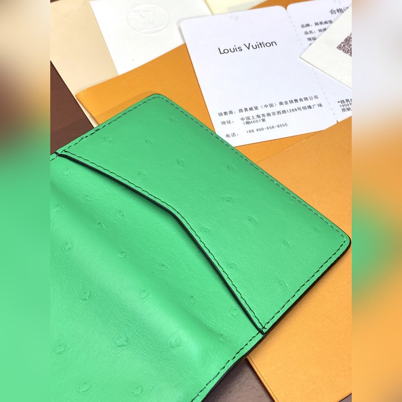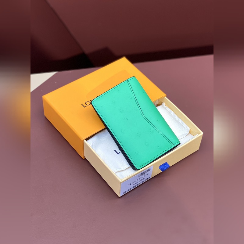 N82507 Vihreä strutsikuvio, korttikotelo Tämä korttiteline on valmistettu upeasta strutsinnahasta, ja se osoittaa Louis Vuittonin syvälliset saavutukset nahan valmistuksessa. Kirkkaat värit tuovat elinvoimaa, ja korttivoileipä, lokero ja vetoketjullinen kolikkotasku ovat monipuolisesti toiminnallisia. 8 x 11 x 1 cm (pituus x korkeus x leveys).