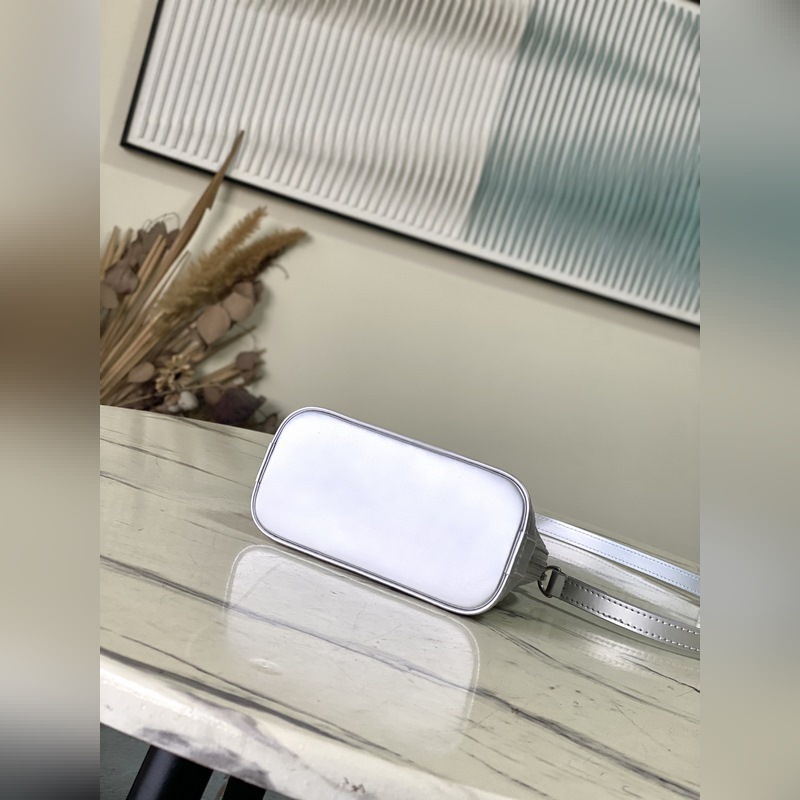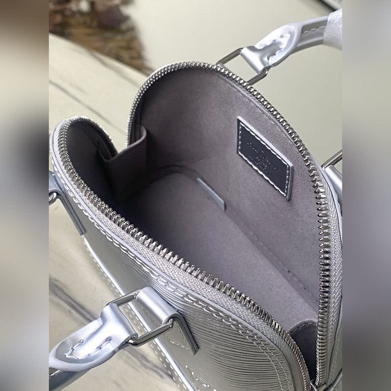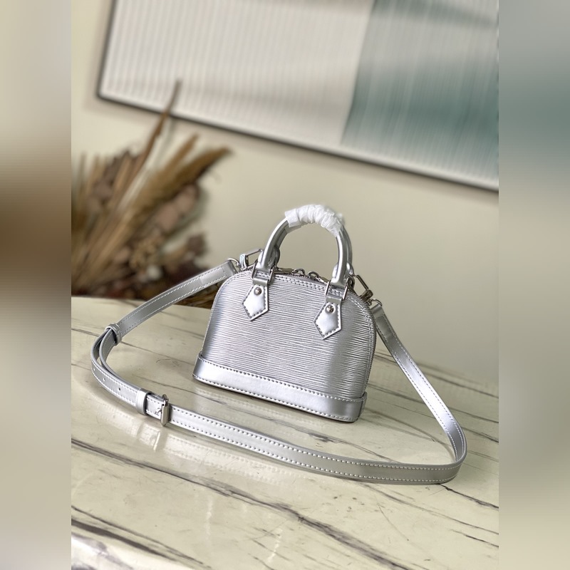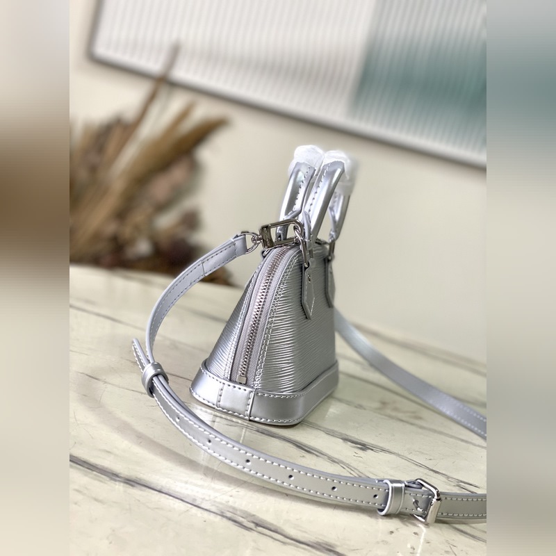 Huippuluokan alkuperäinen M82682 hopea Tämä Nano Alma -käsilaukku käyttää merkin ikonista El-nahkaa tiivistämään klassisen Ama-käsilaukun konfiguraation, ja siinä on ainutlaatuinen rakenne. Kaksinkertaisilla vetoketjuilla, kahvoilla ja irrotettavilla ja säädettävillä olkahihnoilla voidaan saavuttaa useita kantovaihtoehtoja. Koko: 18 × 12 × 8 cm