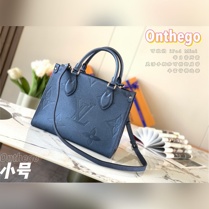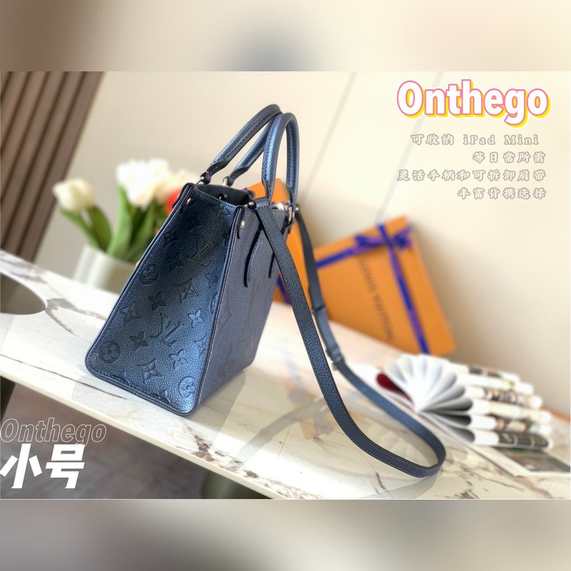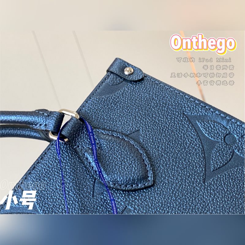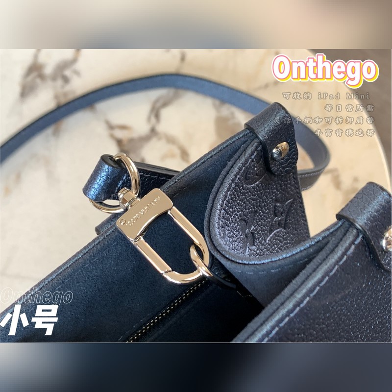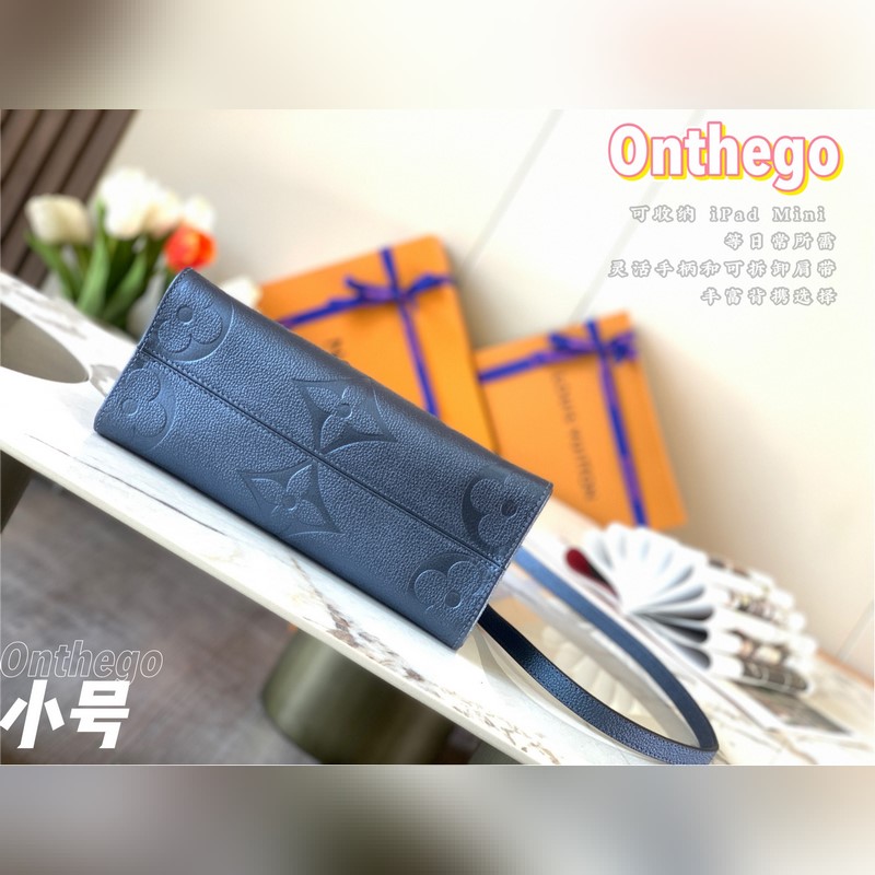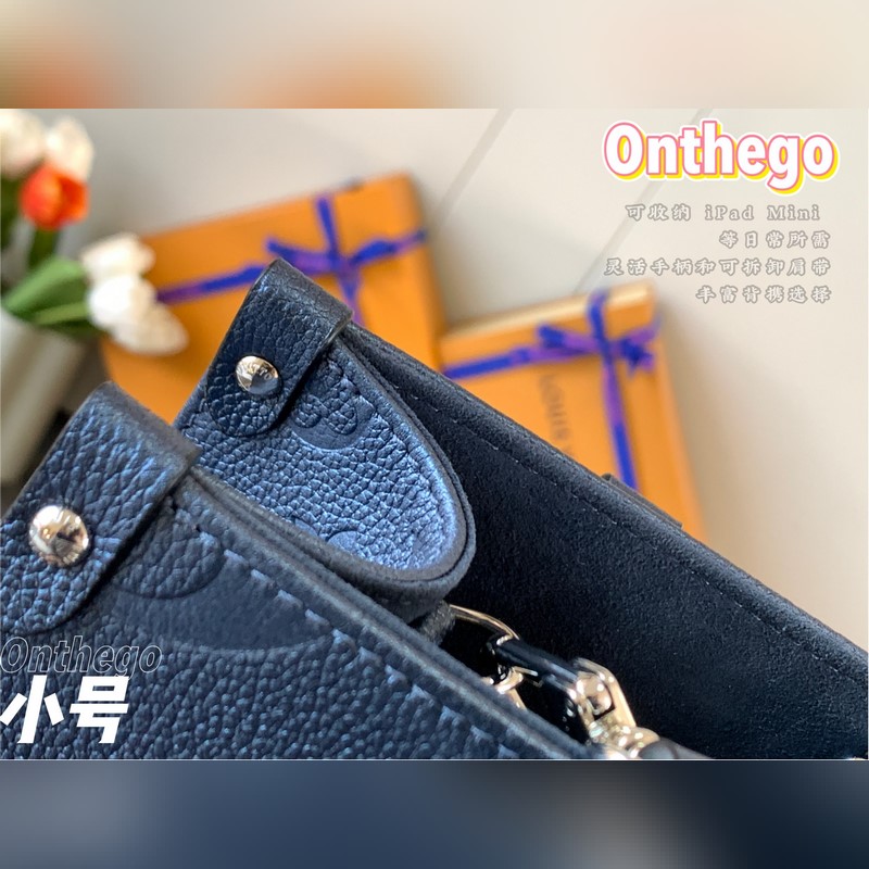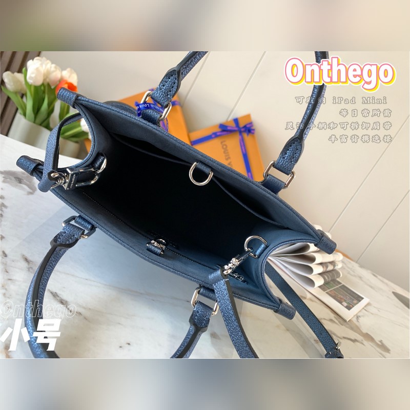 Onthego-pieni Tote-laukku on saanut inspiraationsa klassisesta Sac Plat -käsilaukusta vuodelta 1968. Se on pienoisversio, joka on valmistettu Monogram Empreinte -nahasta, jossa on Giant Monogram -kuvio, johon mahtuu iPad Mini ja muut päivittäiset tarpeet. Joustavat kahvat ja säädettävät olkaimet täydentävät kantomahdollisuuksia.
