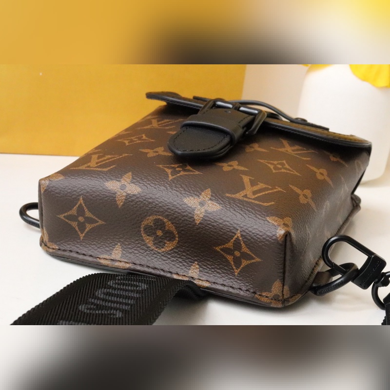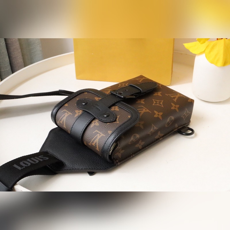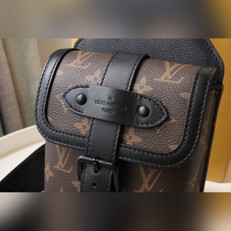 Tämä uusi olkalaukku on saanut inspiraationsa Louis Vuittonin ikonisesta Saumur-laukusta, joka esiteltiin ensimmäisen kerran vuonna 1986. Monogram Eclipse -kangas on yhdistetty talon perinteistä käsityötaitoa edustaviin nahkayksityiskohtiin, kuten ikoniseen niittirenkaaseen kiinnitetty soljellinen olkahihna. Pieni ja tiiviisti istuva se sopii erinomaisesti matkapuhelimien ja muiden pienten tavaroiden kuljettamiseen. Mitat: 13,0 x 18,0 x 3,5 cm.