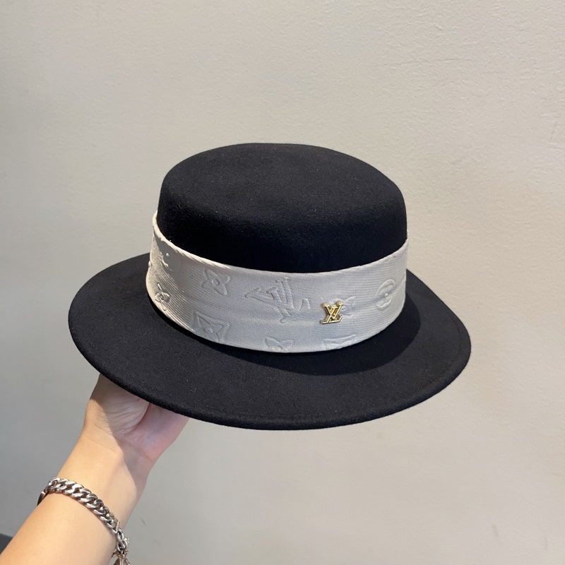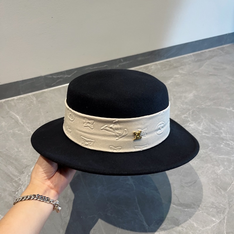 Lv Louis Vuitton uusi villahattu, litteä silinteri, 100 % villakangas % päänympärys 57cm