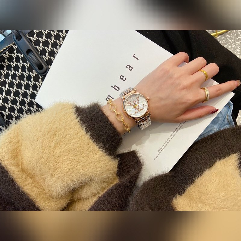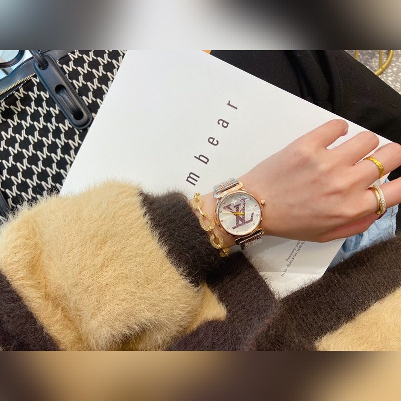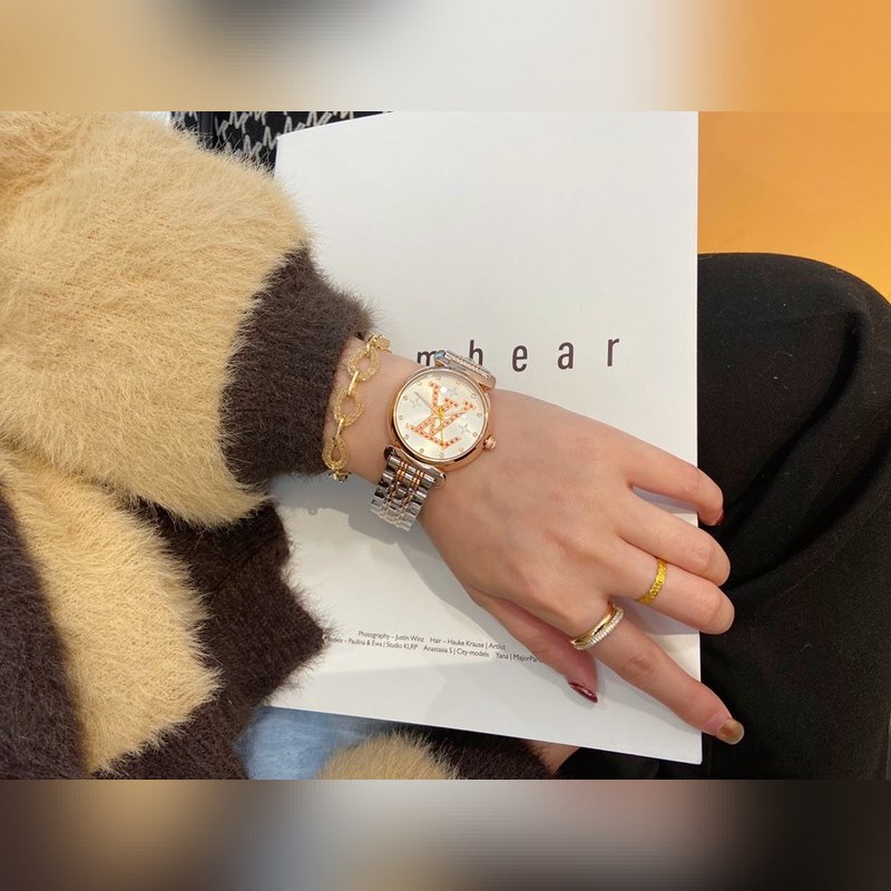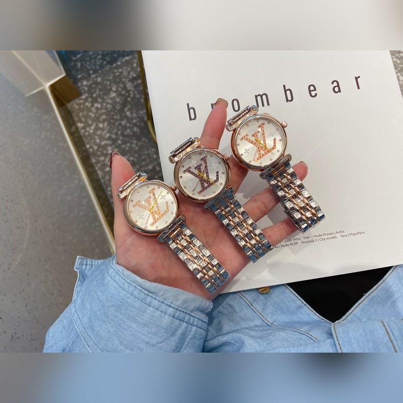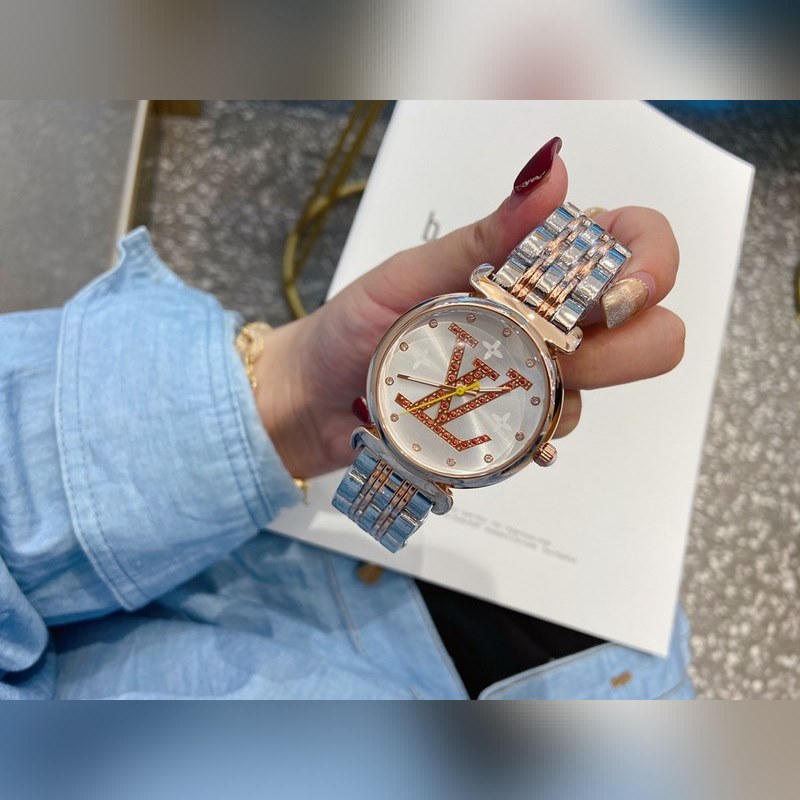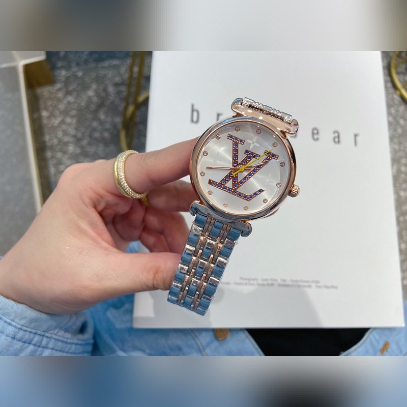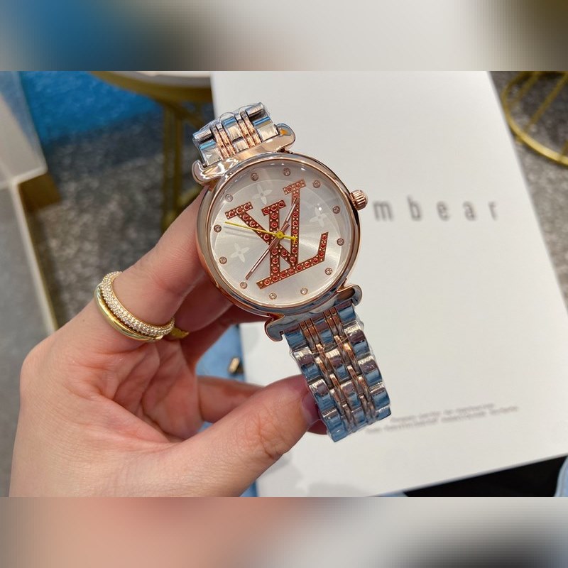 LV Louis -tyylinen naisten kello Siisti ja toimiva muotoilu, muodikas ja antelias. Päivitetty LV-kellon hihnan logo on kaunis, ja se voidaan yhdistää eri tyylisiin vaatteisiin luodaksesi oman aurasi
