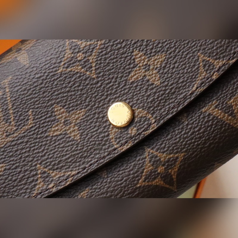 Kultasoljellinen Emilie-lompakko on valmistettu pehmeästä Monogram-kankaasta ja vuorattu kirkkaanvärisellä vuorauksella. Se on erittäin tyylikäs. Monitaskuinen muotoilu ja katseenvangitsija muoto antavat sille vastustamattoman viehätyksen. Koko: 19 x 10 cm