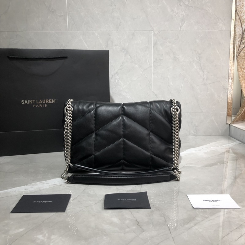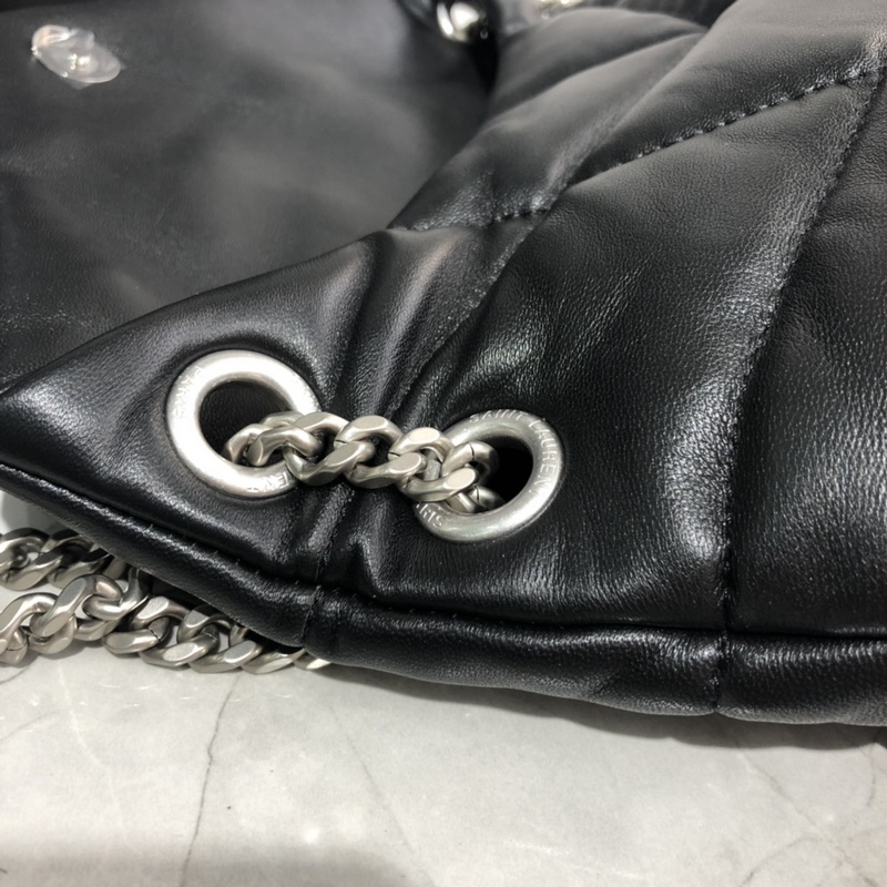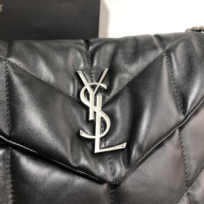29cm_ LOULOU PUFFER tikattu lampaannahkalaukku, joka on valmistettu 100 % karitsannahasta, tuntuu pehmeältä ja herkältä, aivan kuin syleilee pilveä; klassinen Y-logo, ketju ja napinläpilaitteistot on valmistettu hopeaharjatusta metallista, mattapintainen ja ainutlaatuinen.