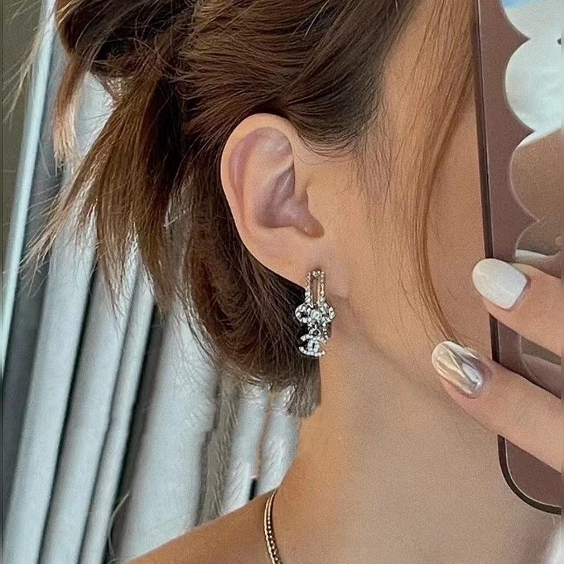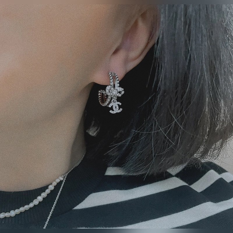 1880140 Myydään hulluna, niin kaunis, ostotason uusin malli, Snow White 23B uudet täystimanttirusetit tupla-C riipuskorvakorut (rusettikorvakorut), erittäin kauniit, samaa messinkimateriaalia kuin tiskissä, kirkas alkuperäinen logopainatus, sterlinghopea neula, ostotaso, super voittamaton ja monipuolinen