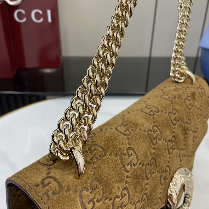 Guccin luova johtaja Sabato de Sarno uudistaa klassisen Dionysus-sarjan pienen olkalaukun. Tämä käsilaukku on valmistettu ruskeasta GG mokkanahkamateriaalista, ja siinä on tiikeripäälukko ja läppä. Liukuketjun pituus on säädettävissä vapaasti, jolloin voit luoda erilaisia tyylejä haluamallasi tavalla.