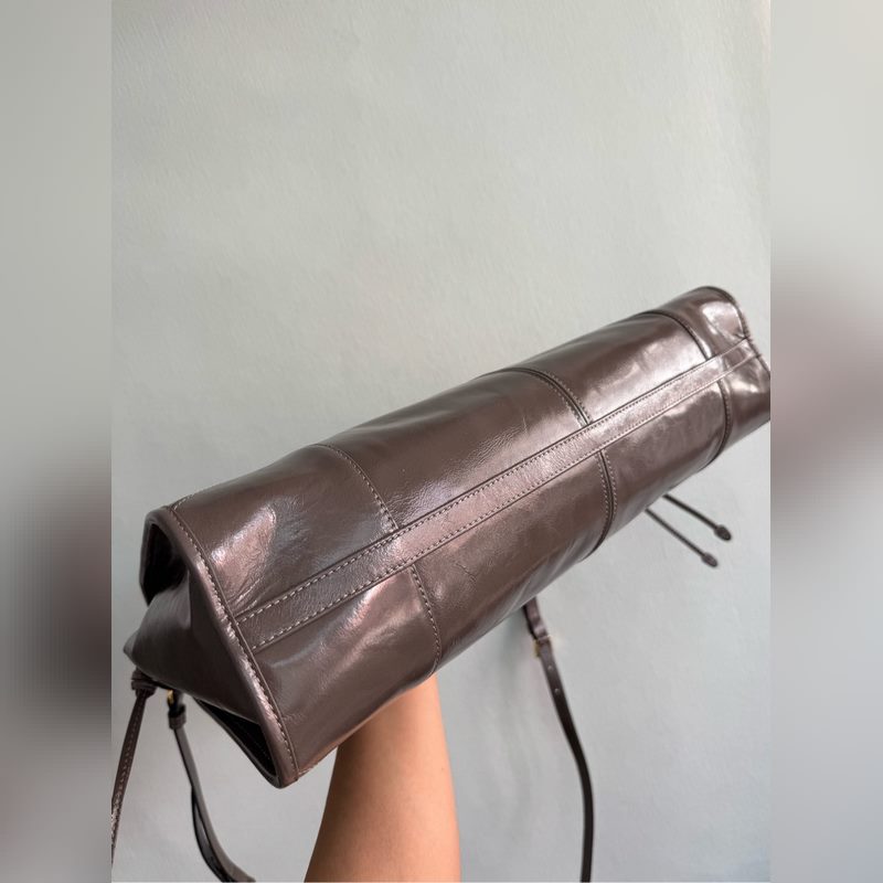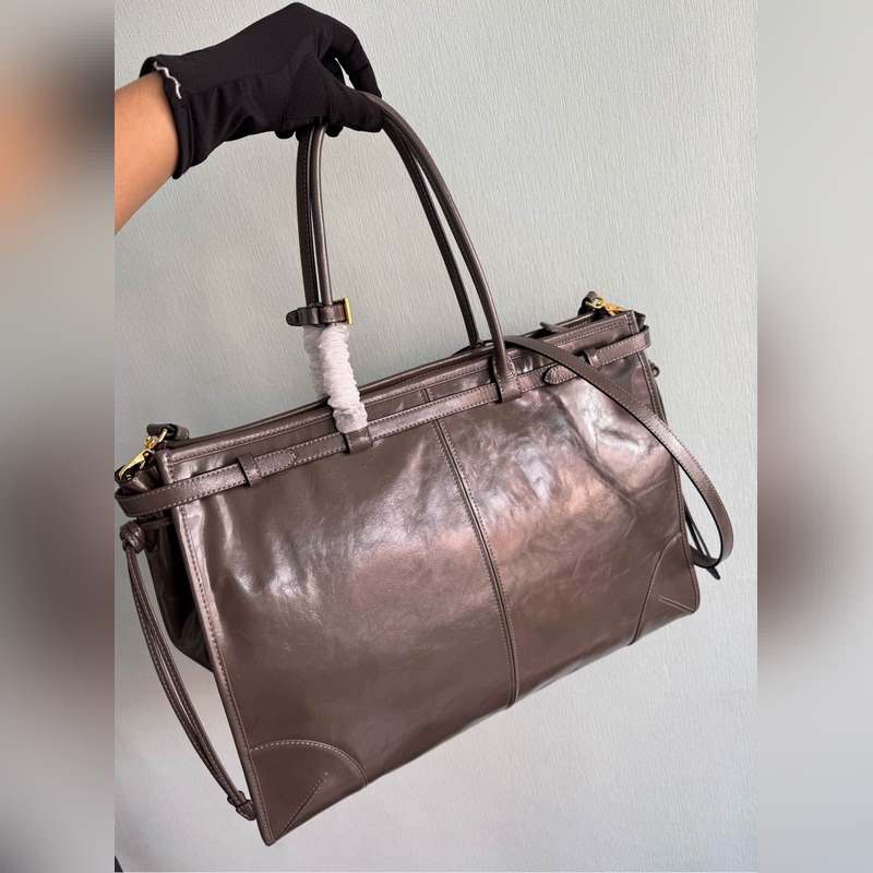 Tämä käsilaukku ja matkalaukku on valmistettu maahantuodusta vahatusta nahasta. Kiiltävä väri huokuu klassista tunnelmaa. Se on varustettu irrotettavalla ja säädettävällä pitkällä olkahihnalla, joka sopii yhteen eri tilanteisiin. Siinä on erittäin suuri kapasiteetti ja se on erittäin helppokäyttöinen. Se on ehdottomasti muotiyrittäjien pakollinen hankinta. Ole nopea ja ota tämä retrotyylinen käsilaukku kotiin. Pituus 42x korkeus 30x pohja 12cm 8869