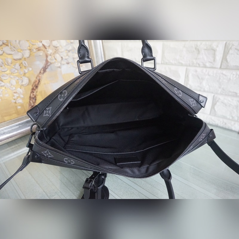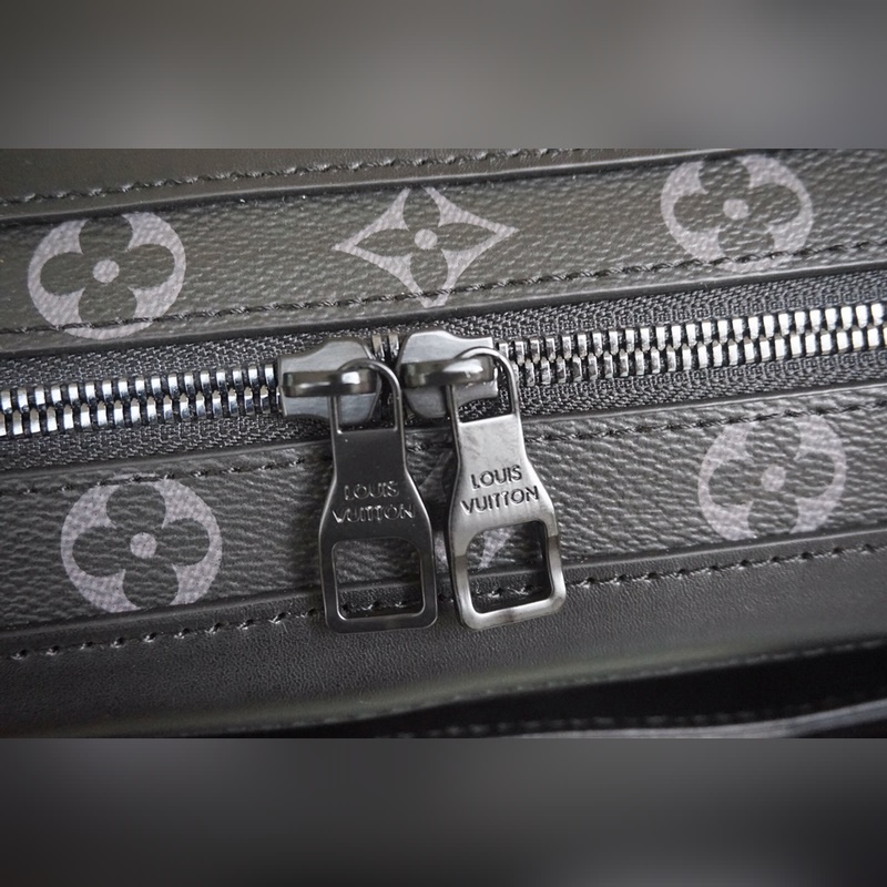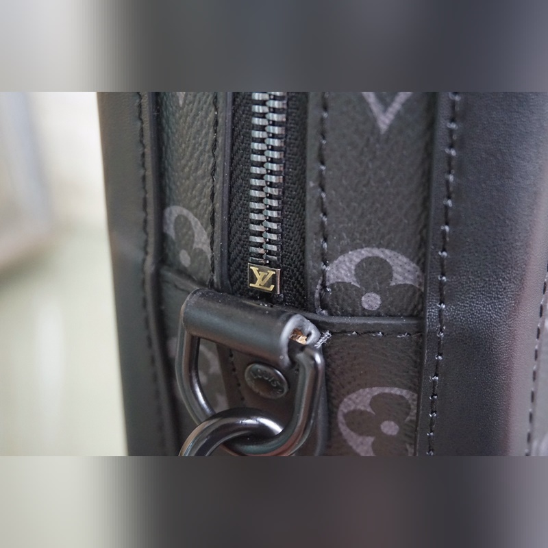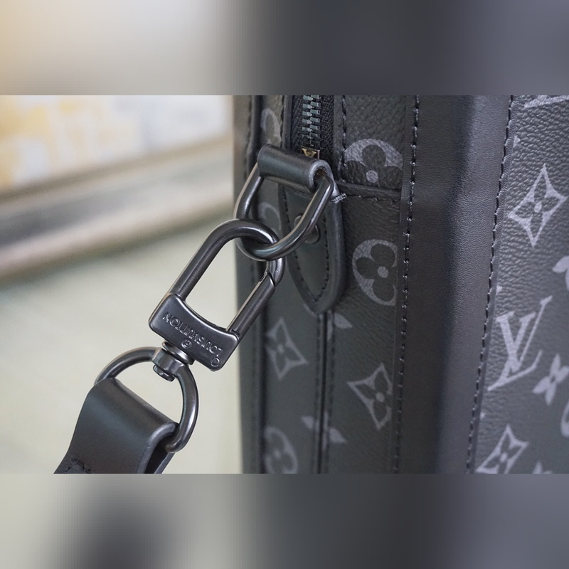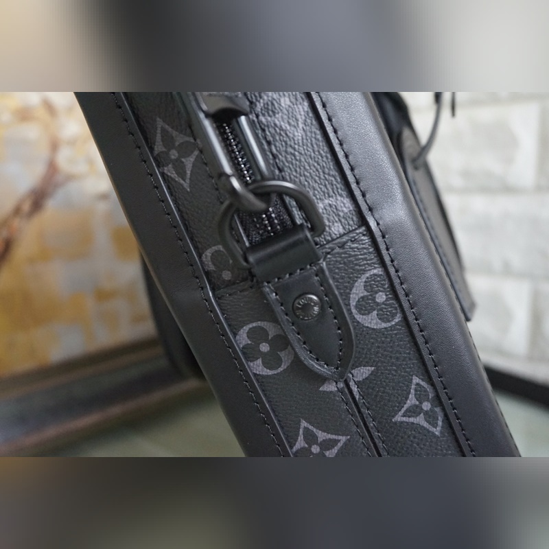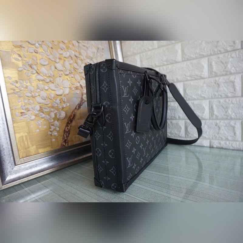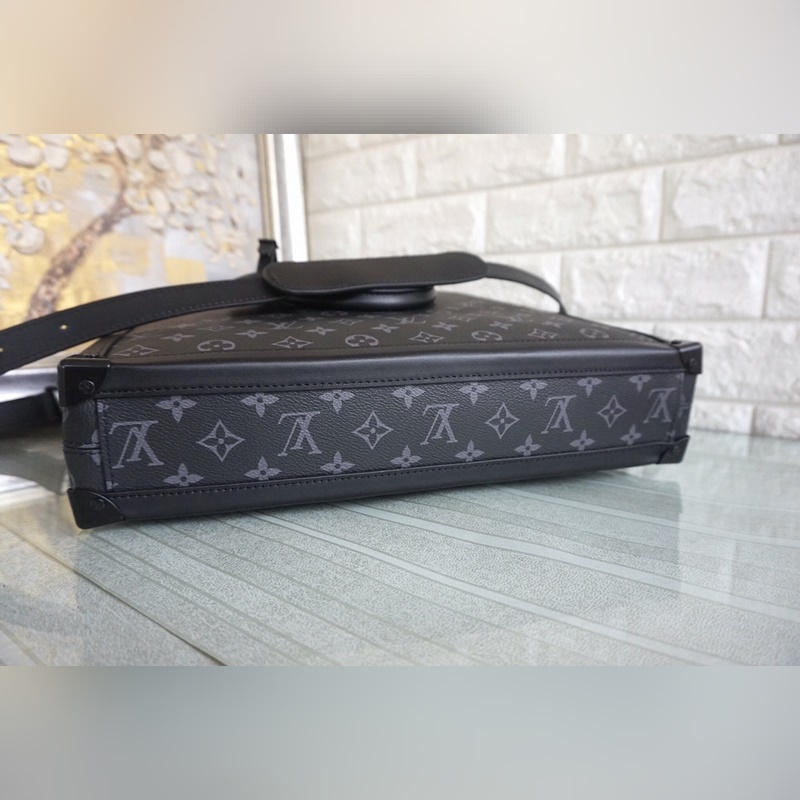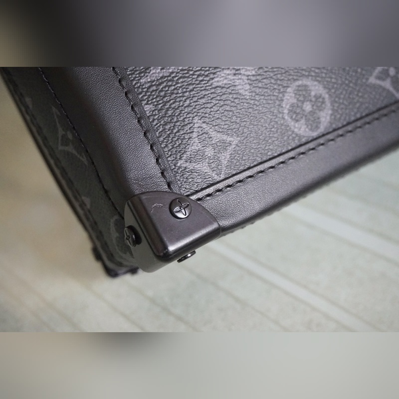 Neliön muotoinen muoto on valmistettu Monogram Eclipse -kankaasta, ja vahvistetut kulmat ovat kunnianosoitus Louis Vuittonin laatikoiden valmistusperinteelle. Nahkainen kahva ja irrotettava olkahihna mahdollistavat erilaisia kantotapoja, ja sisä- ja takaulkotaskut lisäävät toiminnallisia yksityiskohtia: Monogram Eclipse -pinnoitettu kangas ja lehmännahka; kangas vuori; lehmännahka leikata; metalliosat; vetoketju; irrotettava nahkainen olkahihna; irrotettava nahkainen nimikyltti; ulompi takatasku; sisäinen tasku; Kaksinkertaisen sisätaskun koko: 38x29x8cm