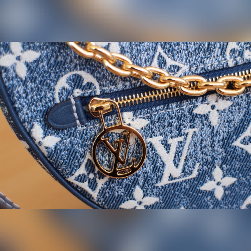 Ensimmäisen kerran 2022 Cruise Spring/Summer -näyttelyssä, siinä on haalistunut denim, jossa on Monogram jacquard-kudos sekä nahkareunukset ja olkaimet. LV Circle vetoketju ja irrotettava ketju viimeistelevät yksityiskohdat. Jacquard denim-lehmännahka ja lehmännahkaverhoilu-jacquard denim vuori-metalliosat-vetoketjullinen etutasku LV Circle -logolla vetoketju vedettävä irrotettava, säädettävä olkahihnaKoko: 23x13x6cm