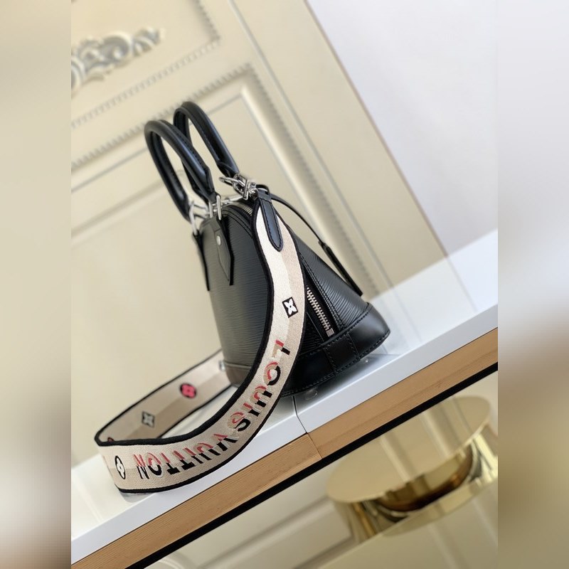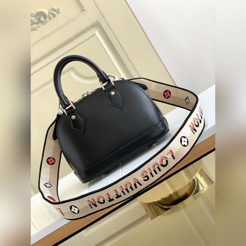 Tässä Alma BB -käsilaukussa on yksi Louis Vuittonin ikonisimmista malleista värikkäällä Epi-nahalla, ja jakardi olkahihna on koristeltu Louis Vuitton -logokirjonnalla ja Monogram-kukkarypäleillä molemmilla puolilla, sekä herkät dynaamiset ompeleet, joissa visuaaliset reunat keskittyvät.