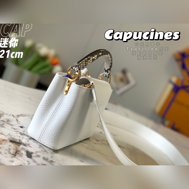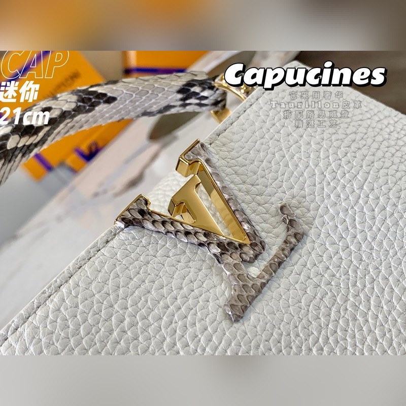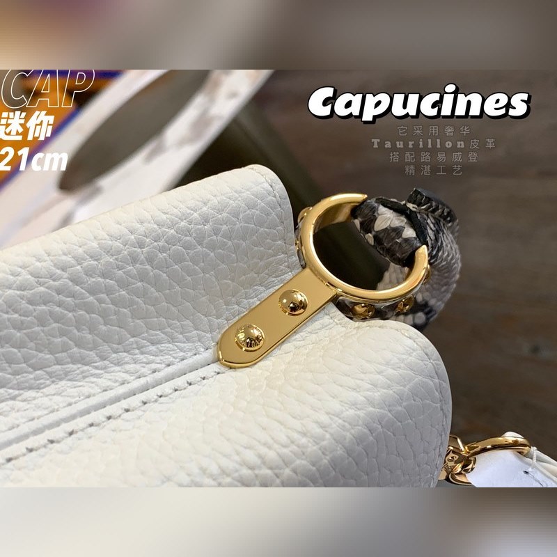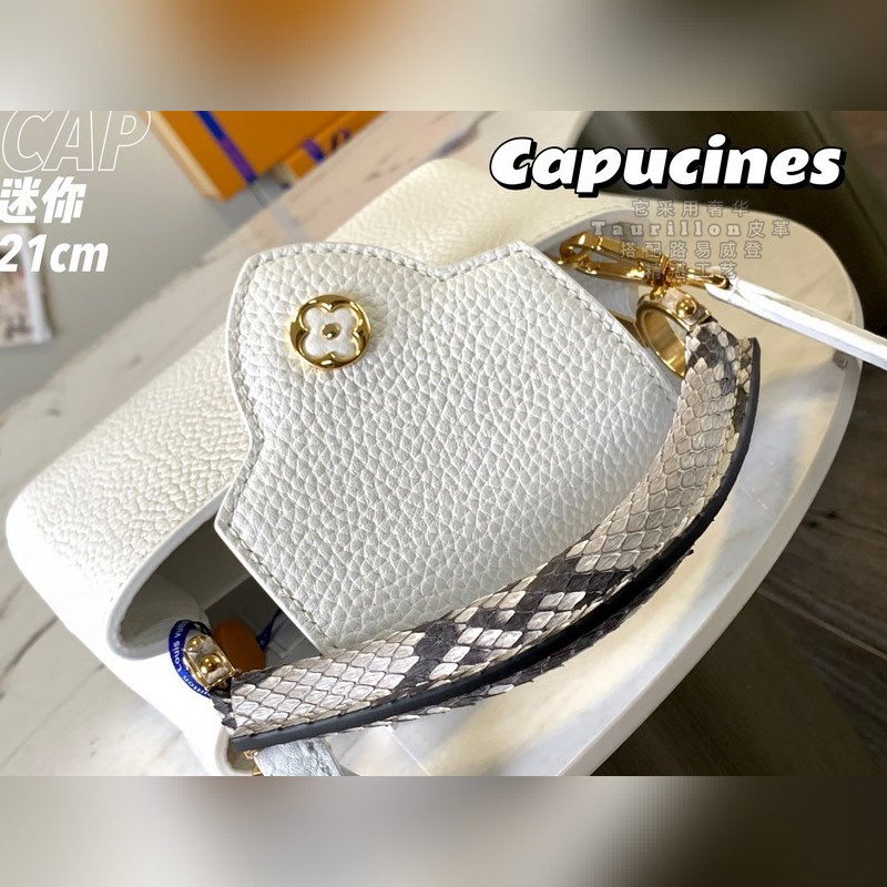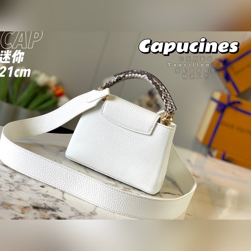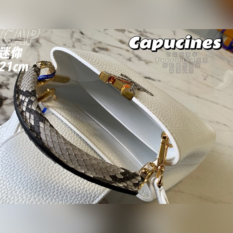 LV Capucinesin minikäsilaukku Malli M55921 Valkoinen Python Gold -solki