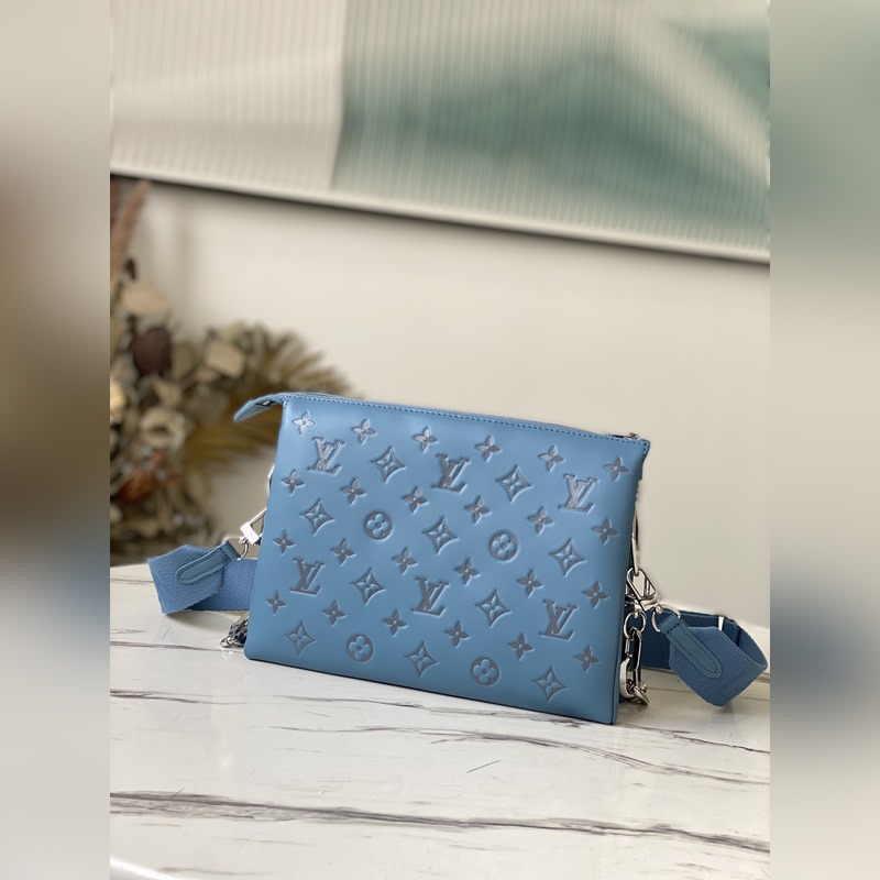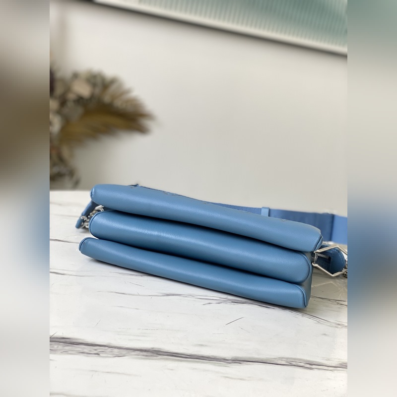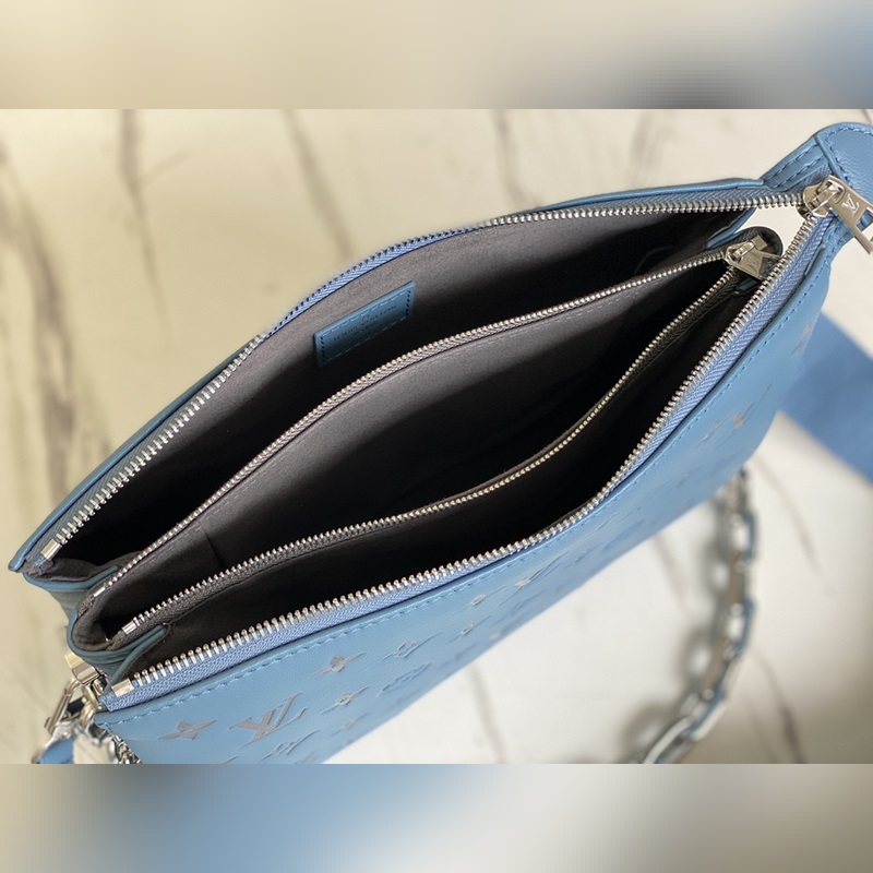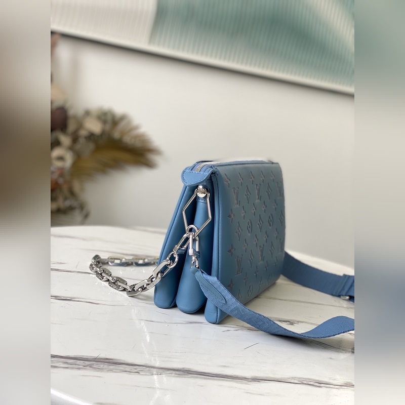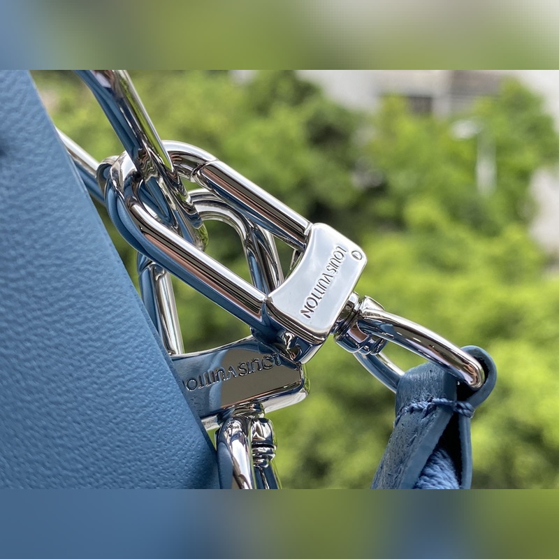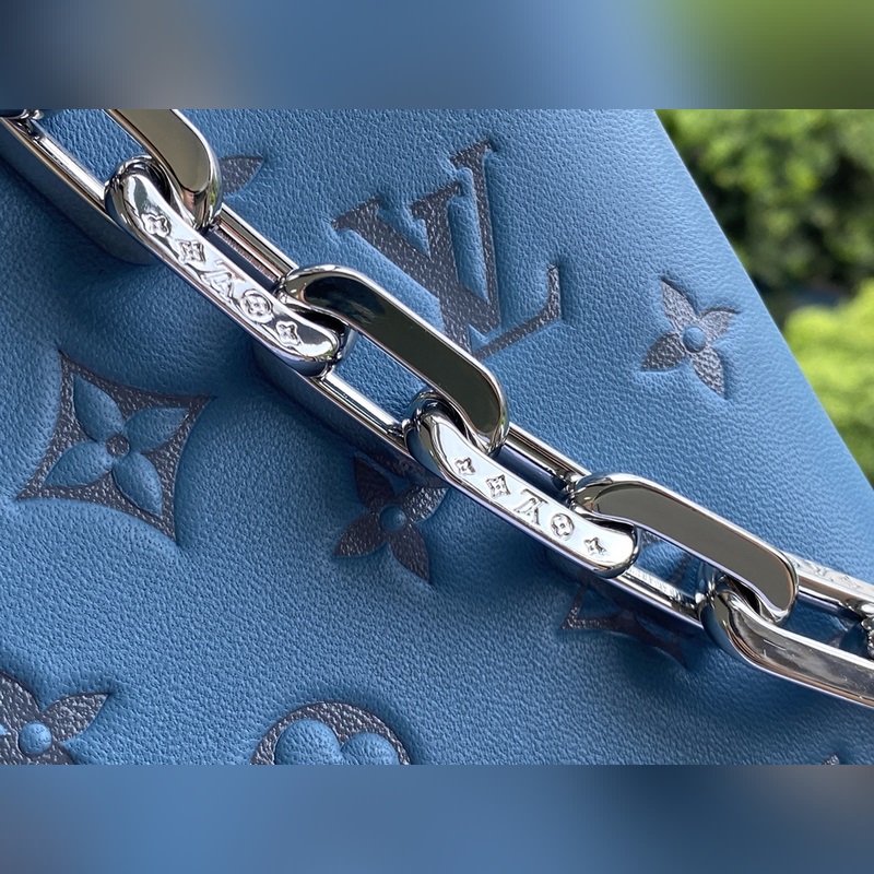 Vuittamins-kapselikokoelmasta pörröinen lampaannahka on koristeltu lujalla ketjulla, jossa käytetään kirkkaita värejä ilmaisemaan Nicolas Ghesquièren tulkintaa itsevarmasta ilosta. Sitä voidaan kuljettaa vartalon poikki olkahihnan kanssa, ketjupatonkina tai käsivarren alla. Mitat: 26 x 20 x 12 cm