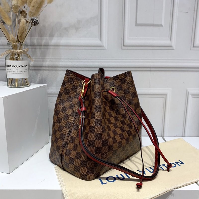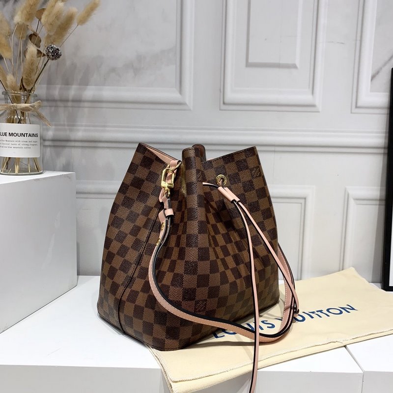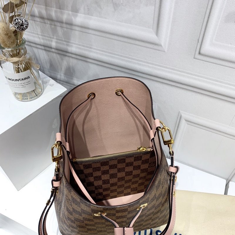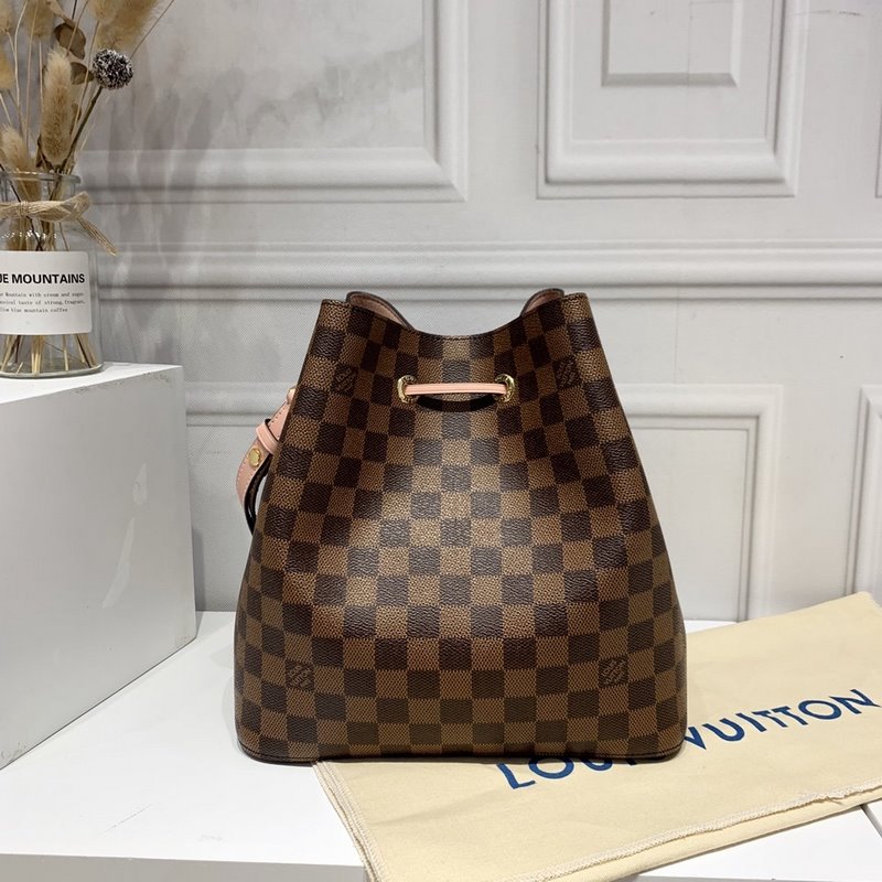 LV Damier Ebène Bucket Replica Bag sileällä nahkaverhoilulla