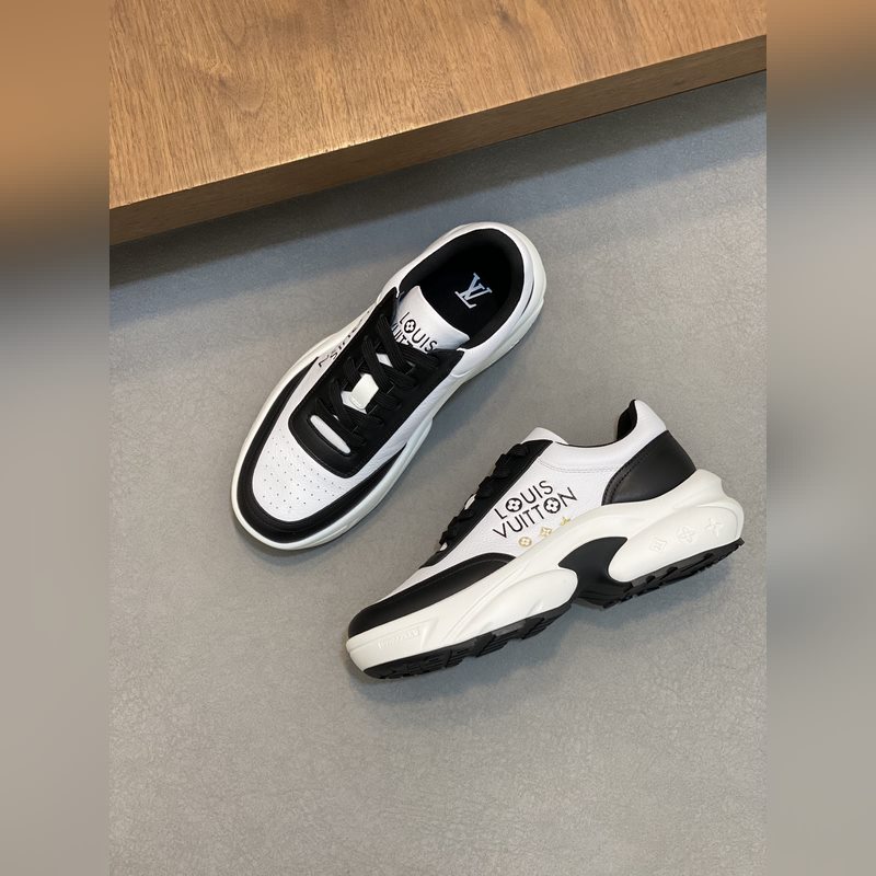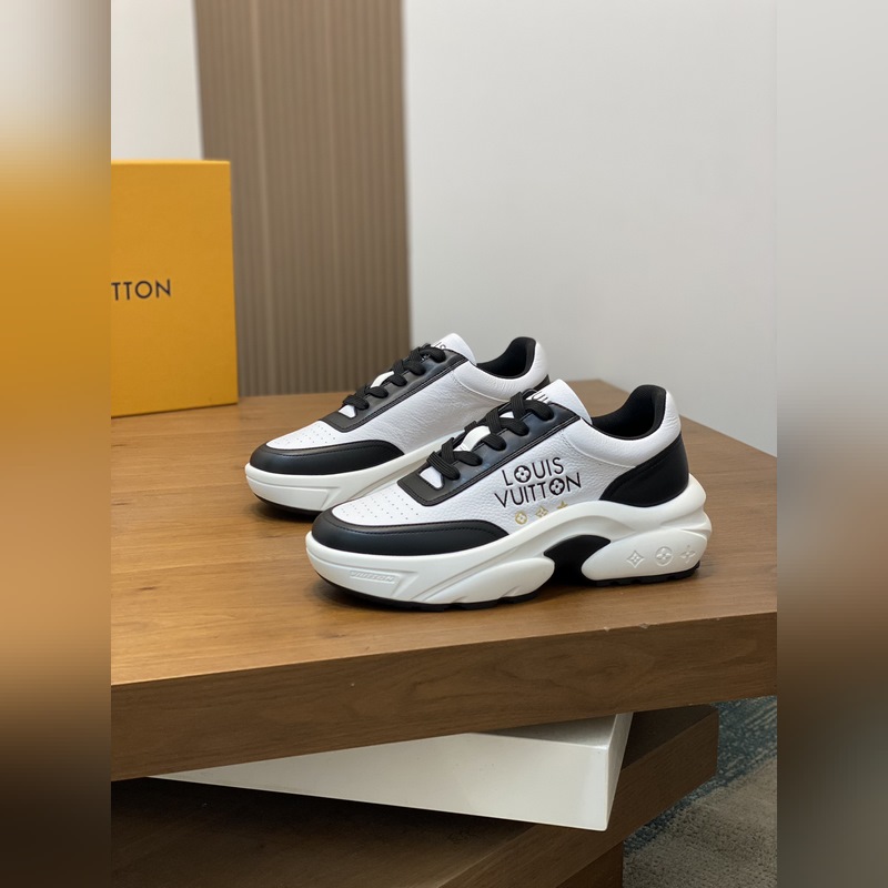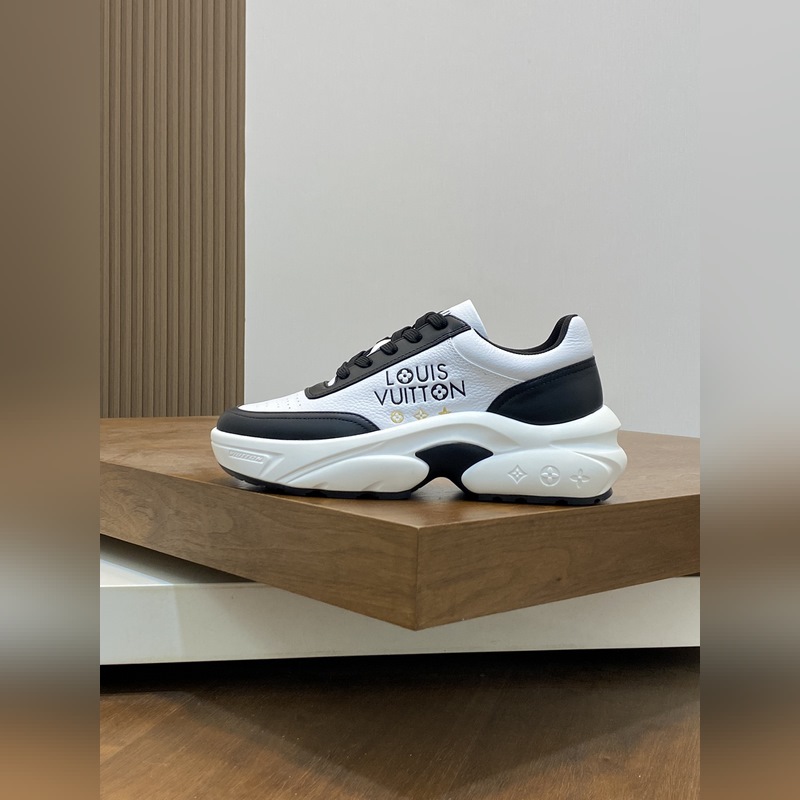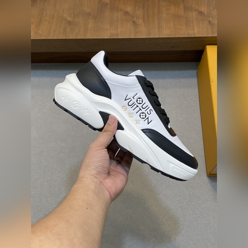 Tämä LV Discovery ammentaa inspiraatiota vaelluskengistä ja korostaa urheilullista tyyliä sekoitetuilla teknologisilla materiaaleilla. Kevyt ja joustava kumipohja tarjoaa vahvan pidon, ja Monogram-kukka ja Vuitton-logo on jaettu ulkopohjaan ja kielekkeeseen.