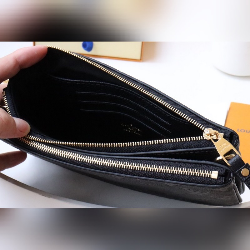 LV-mallin M69203 kohokuvioitu DOUBLE ZIP POCHETTE -käsilaukku