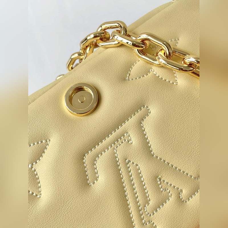Tämä Wallet on Strap -käsilaukku on Bubblegram-sarjasta. Se on valmistettu pehmeästä pehmustetusta lehmännahasta, johon on brodeerattu klassinen Monogrammi-kuvio. Magneettinen läppä avaa trendikkään kokoonpanon, ja dynaaminen nailoninen olkahihna voidaan kantaa olkapäällä ja crossbodylla. Irrota olkahihna muuttaaksesi siitä iltakytkimen.