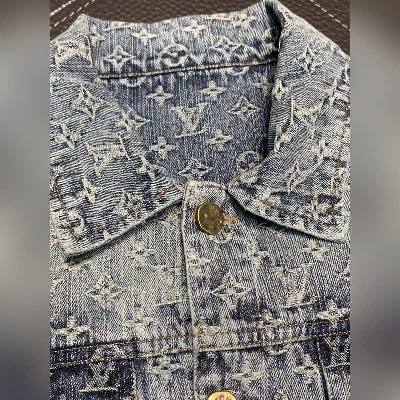 LV Louis Vuitton eksklusiivinen kevään ja syksyn rento käänne farkkutakki Huippuluokan räätälöinti Korkea versio Muodikas ja monipuolinen kuuma tuote Tuotu kangas Superpehmeä ja herkkä tuntu Ihoystävällinen ja mukava käyttää Huippuluokan putiikki OEM-tehdashieno työstö Erittäin hyvä vartalolle Miesten pakollinen tuote Kolme etikettiä valmiina Koot M-3XL