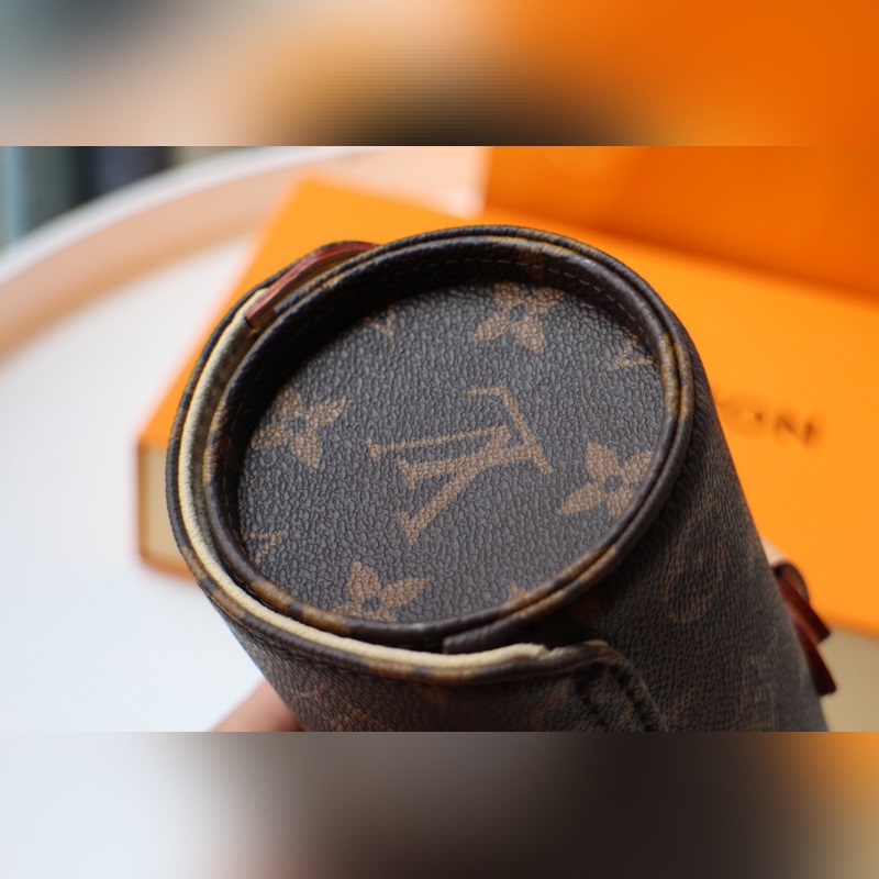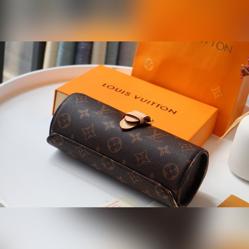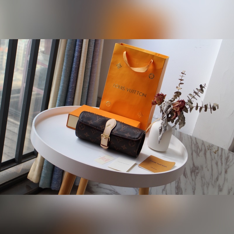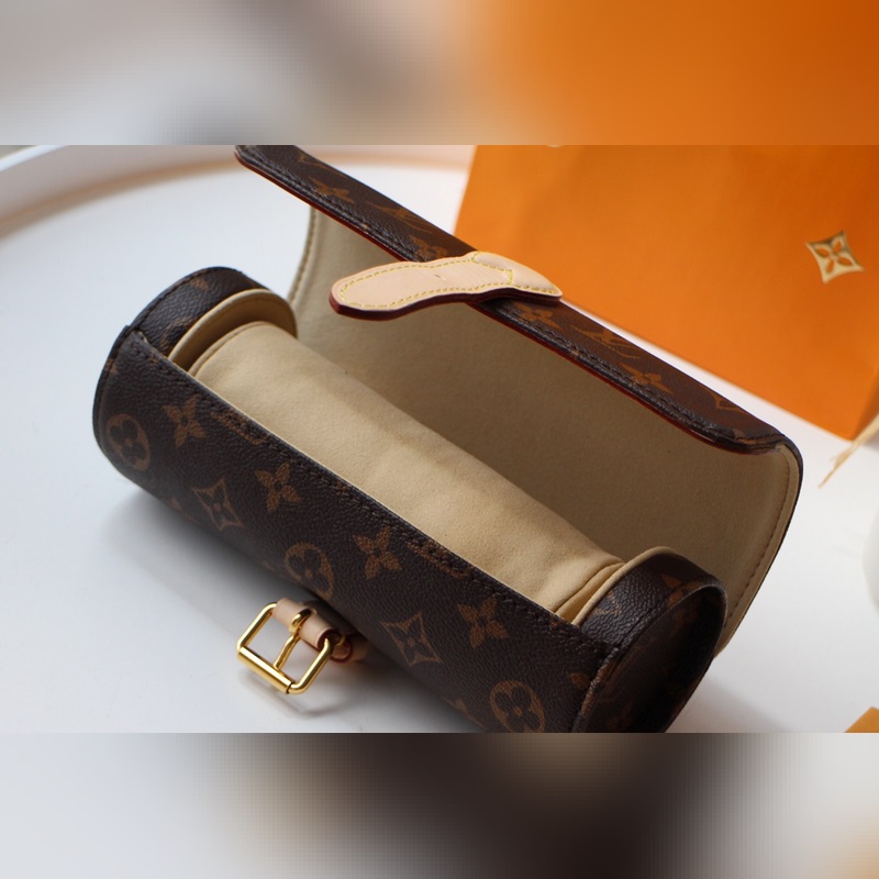 Tämä lieriömäinen kellolaatikko on valmistettu luonnollisesta lehmännahkaisesta hihnasta ja kultaisesta metallisoljesta – siihen mahtuu 3 miesten tai 4 naisten kelloa. Koko: 20x8x8cm