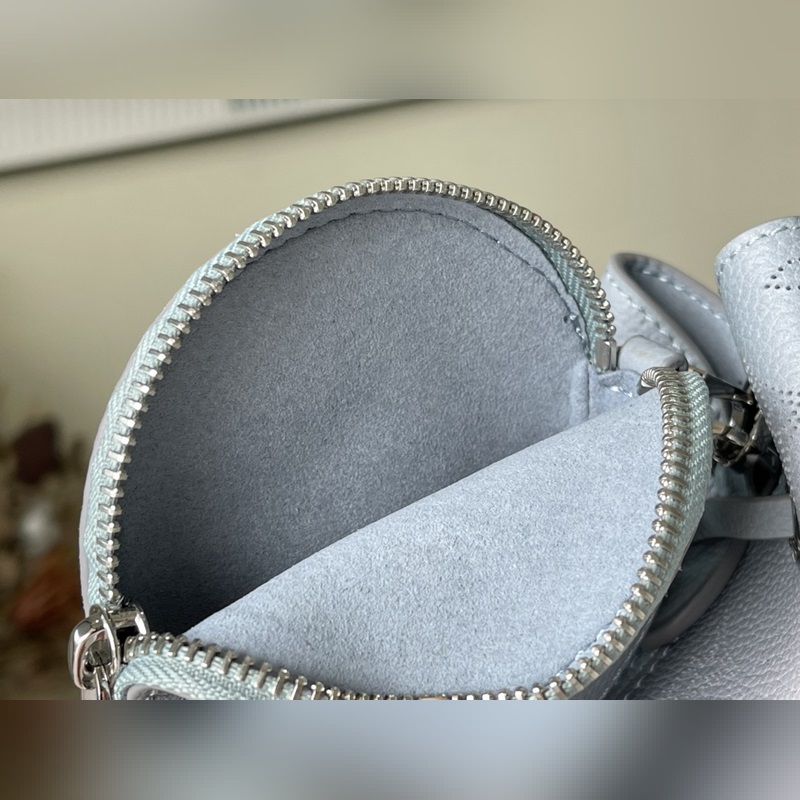 Gradienttivaikutelma saavutetaan käsin ruiskuttamalla, mikä antaa jokaiselle valmiille tuotteelle sädekehämäisen ilmeen. Hieno kokoonpano on varustettu kiristysnyörillä ja irrotettavalla pyöreällä kolikkolaukulla. Mitat: 19 x 22 x 14 cm