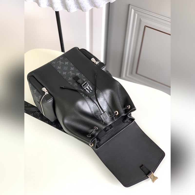 OUTDOOR-reppu Tagara-kokoelman Outdoor-reppu yhdistää Tagama-nahan ja Monogram Eclipse -kankaan, luoden retrotyyliä modernilla kokoonpanolla. Turvalliset nepparit ja vetoketjulliset sivutaskut tarjoavat helpon pääsyn, ja tilavaan päälokeroon mahtuu kannettava tietokone.