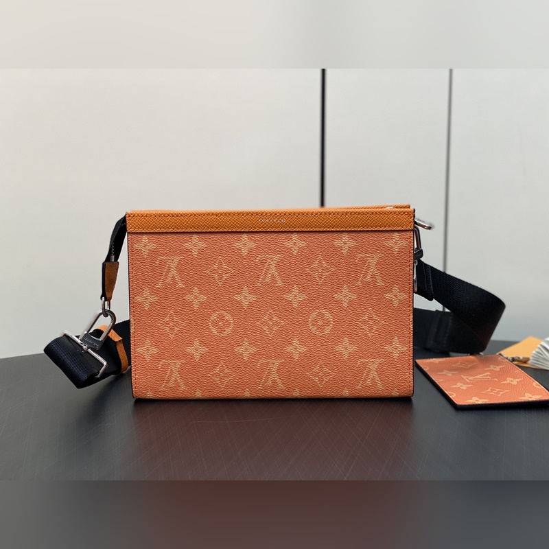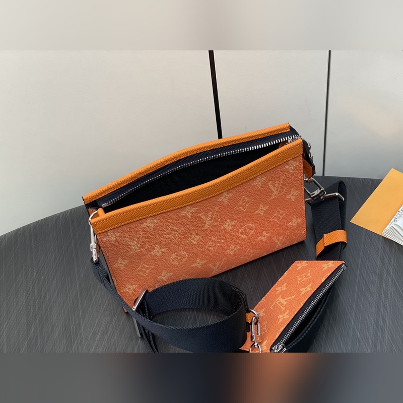 LV M30935 Oranssi miesten laukku kaksiosainen setti Alpha puettava lompakko Yhdistämällä Monogram Eclipse -kankaan ja nahkaverhoilun, siihen mahtuu matkapuhelin ja pieni lompakko. Leveäsuinen muotoilu ja sivuhaitarirakenne on helppo ottaa ja laittaa, ja säädettävä olkahihna mahdollistaa monenlaiset kantotavat. Koko: 18,5 x 11 x 6,5 cm.