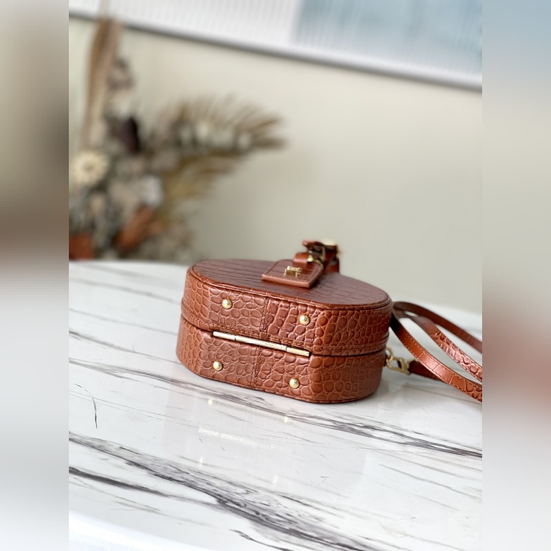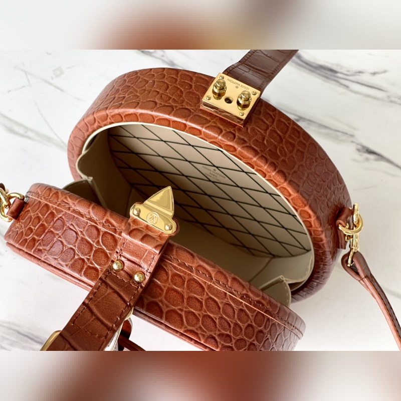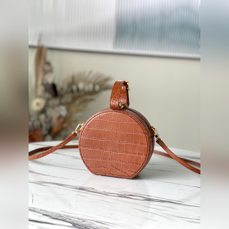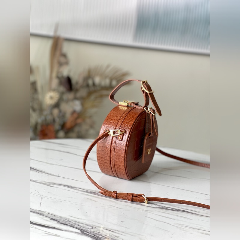 Naisellinen matkatarvike – hattulaatikko – muuttuu hurmaavaksi ja muodikkaaksi käsilaukuksi kiiltävän ja arvokkaan alligaattorin ihon läpi. Se on pieni ja käytännöllinen, säädettävät kahvat ja irrotettavat pitkät olkaimet. Krokotiilikuvio pullistuu oo[kädenpuristus][kädenpuristus] helppoa kantamista varten. Tämä Petite Boite Chapeau -käsilaukku ilmentää eleganssia ja ylellisyyttä. Ymmärtääksesi paremmin huippulaatua, tarvitset omistautuneen konsultin, joka esittelee sinulle ammattitaito- ja huoltovinkit. Soita Louis Vuittonin asiakaspalvelukeskukseen. 17,5 x 16,5 x 7,5 cm