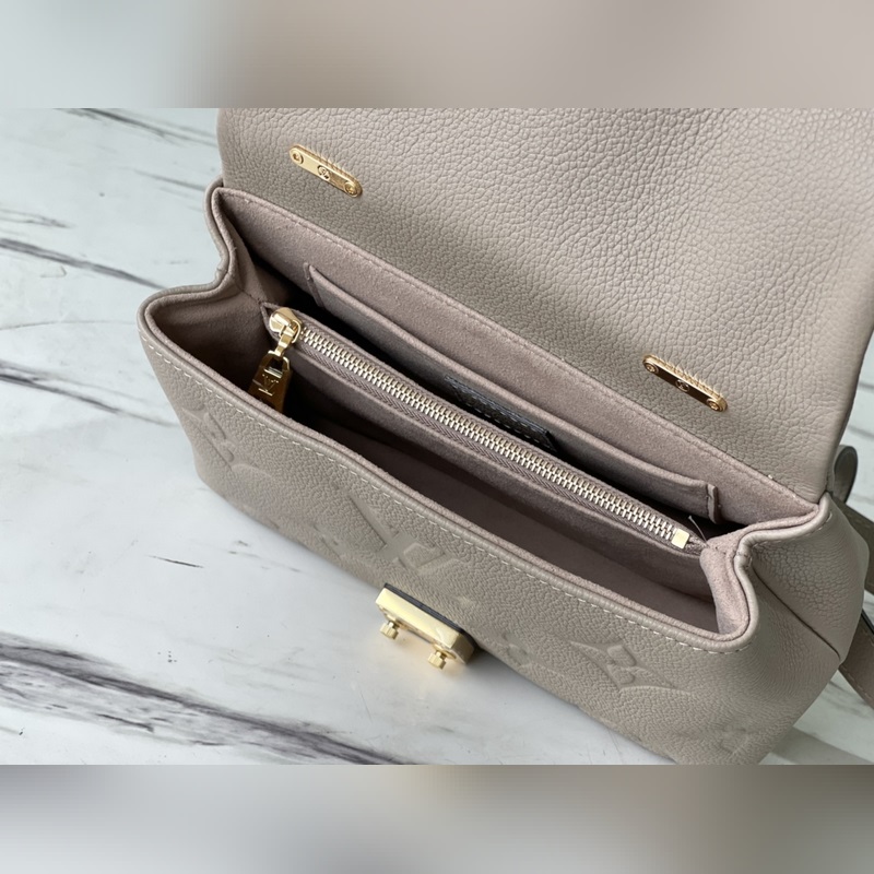Suuri kohokuvioitu ja painettu nahka, jossa S-lock-lukko myös laukussa. Yläkahva ja irrotettava olkahihna mahdollistavat tyylikkään kantovaihtoehtojen vaihtamisen. Mitat: 24 x 17 x 8,5 cm