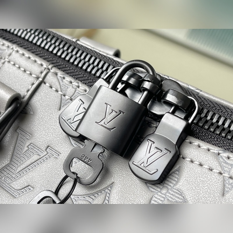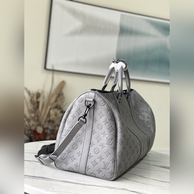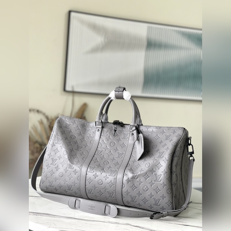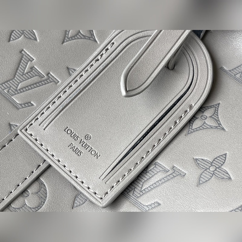 Pehmeässä lehmännahassa on hienovaraisesti kohokuvioitu ikonisia kuvioita, ja tilava kapasiteetti ja käsimatkatavara sopivat lyhyille matkoille. Mitat: 50 x 29 x 23 cm