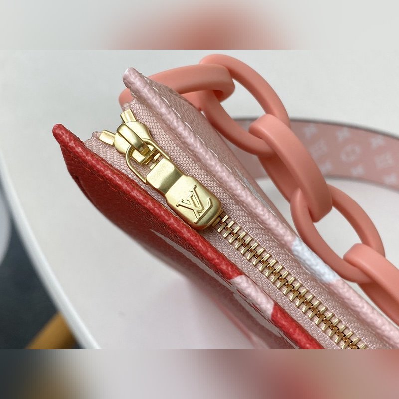 Sisätila on tilava, ja kaksi sivua on suunniteltu haaratyylisellä muotoilulla, joka on kätevä tavaroiden ottamiseen ja laittamiseen, ja se on helppo laittaa käsilaukkuun. Monogrammikangaslaukku body-kulta messinkivetoketju, jossa nahkaläppäpestävä vuori, ja sivussa on haaratyylinen muotoilu.