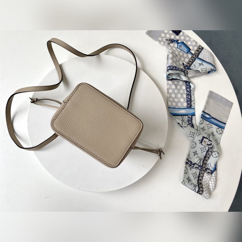Valmistettu pehmeästä rakeisesta vasikannahasta, tämä on miniatyyri versio Lockme Bucket -laukusta. Kevyt muotoilu on metallinen kääntyvä solki, joka on helppo kuljettaa olkapäällä tai poikkivartalossa.