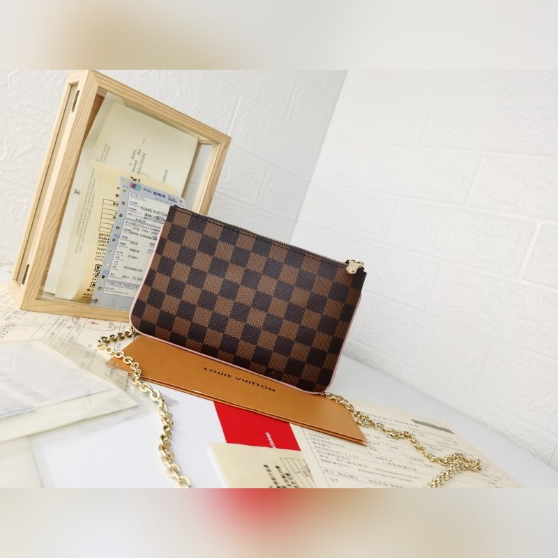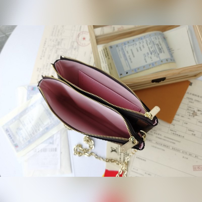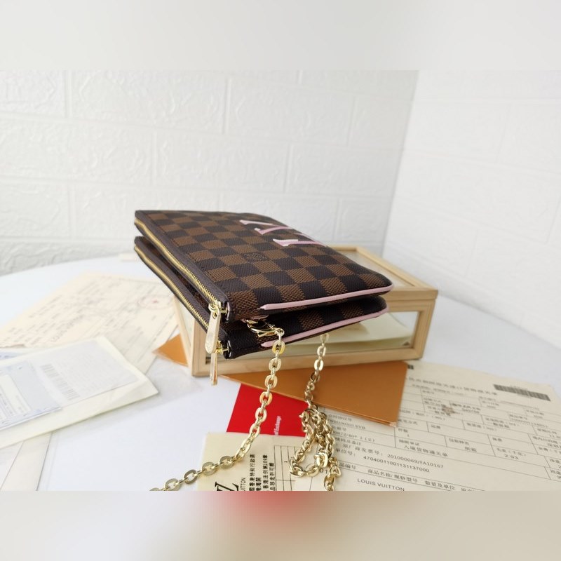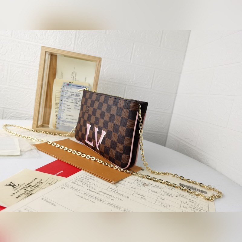 Tässä Double Zip Pochette -ketjulaukussa on klassinen Monogram-kuvio, joka on valmistettu Monogram Empreinte pehmeästä lehmännahasta syvin sävyin. Vetoketjutaskua ja keskimmäistä paikkataskua voidaan käyttää tavaroiden asianmukaiseen säilytykseen, ja irrotettavaa ketjua voidaan vaihtaa olkapään ja käden välillä.