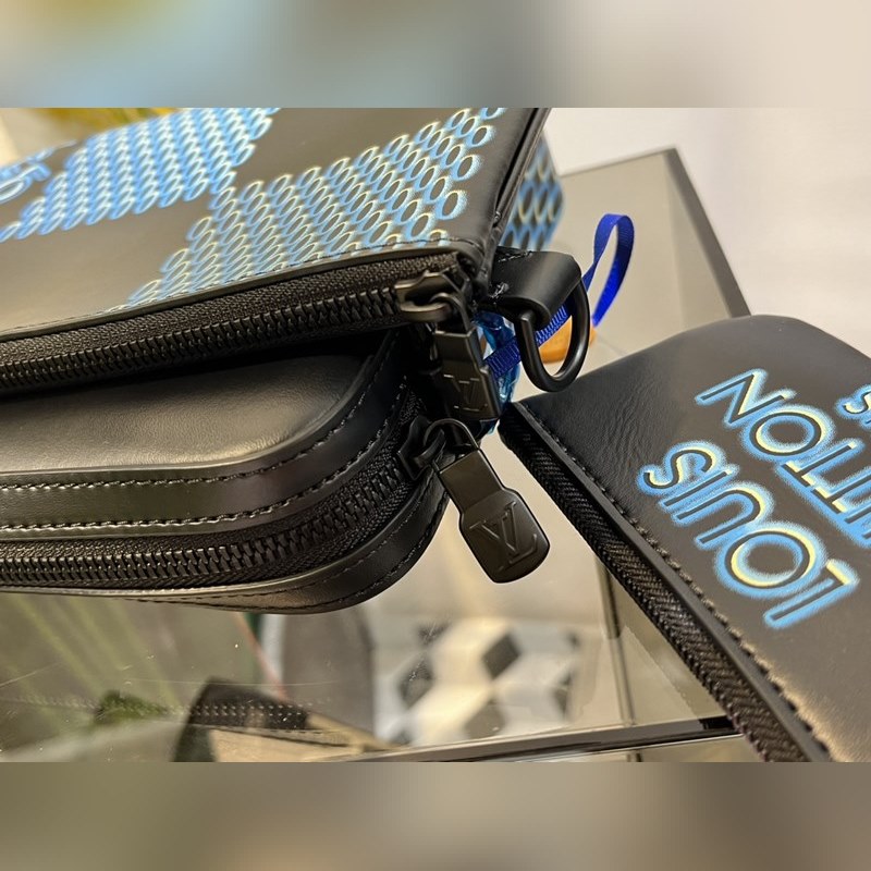Vapauta Damier Spray -elementtien trendikäs kiinnostus. Louis Vuittonin ikoninen Damier-kuvio on suurennettu ja heijastuu 3D-efektinä. Sileä ja rakeinen lehmännahka luo useita rakenteita, mukaan lukien irrotettavan etutaskun ja kolikkolaukun olkahihnassa, luoden katudesignin Damier-ystäville.