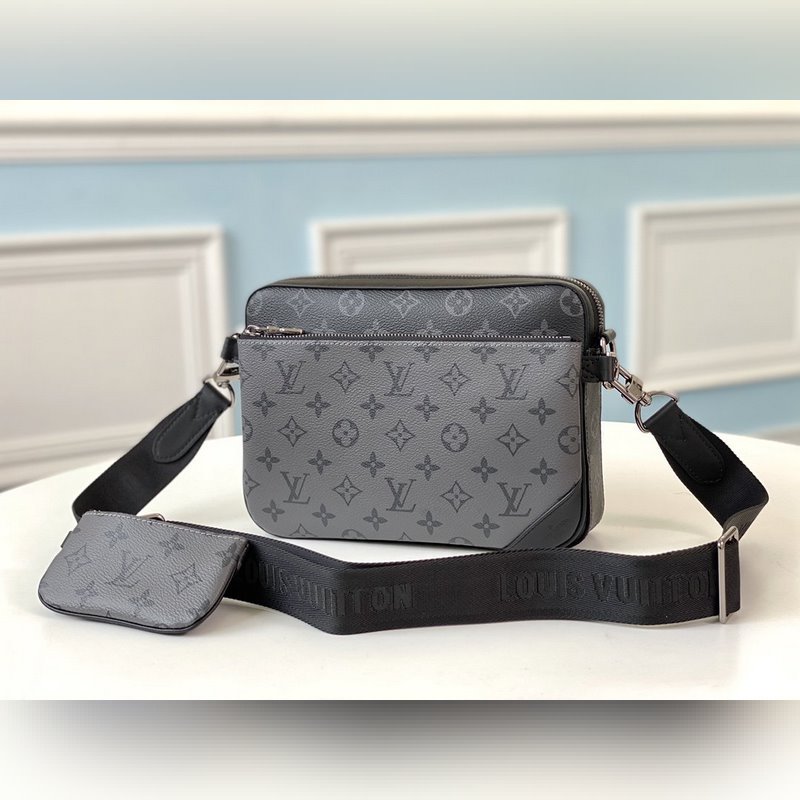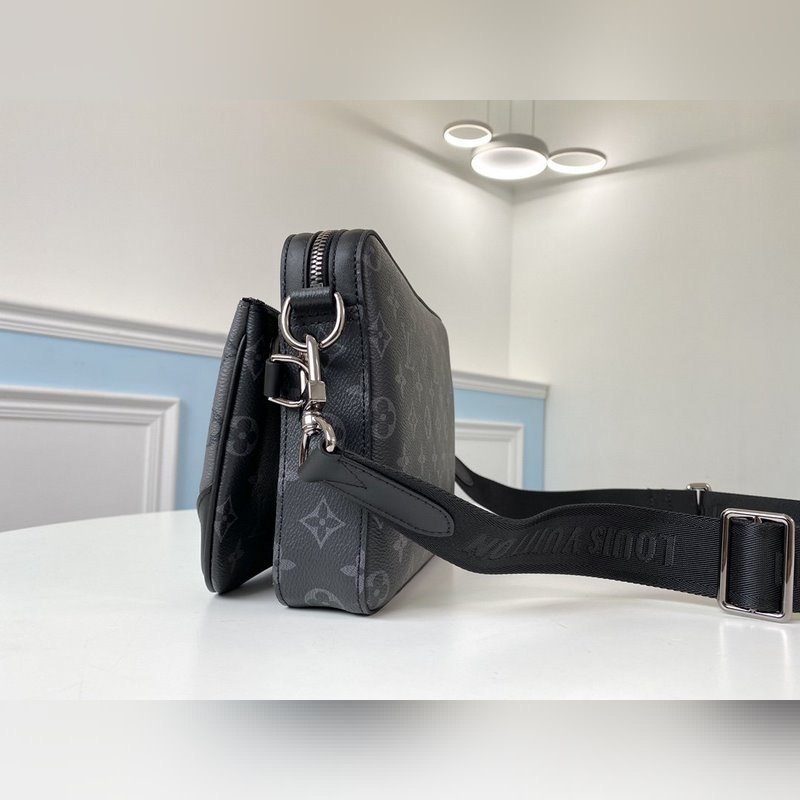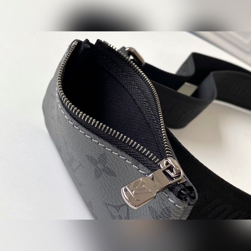 Valmistettu Monogram Eclipse -kankaasta ja Monogram Eclipse Reverse -kankaasta. Ikoninen sävy sävyyn harmaa kuvio korostaa tämän monipuolisen tilkkutäkkimallin linjoja. Perinteisen crossbody-käsilaukun toimintojen lisäksi siinä on myös irrotettava vetoketjutasku ja laukkuhihnaan kiinnitetty kolikkokukkaro.