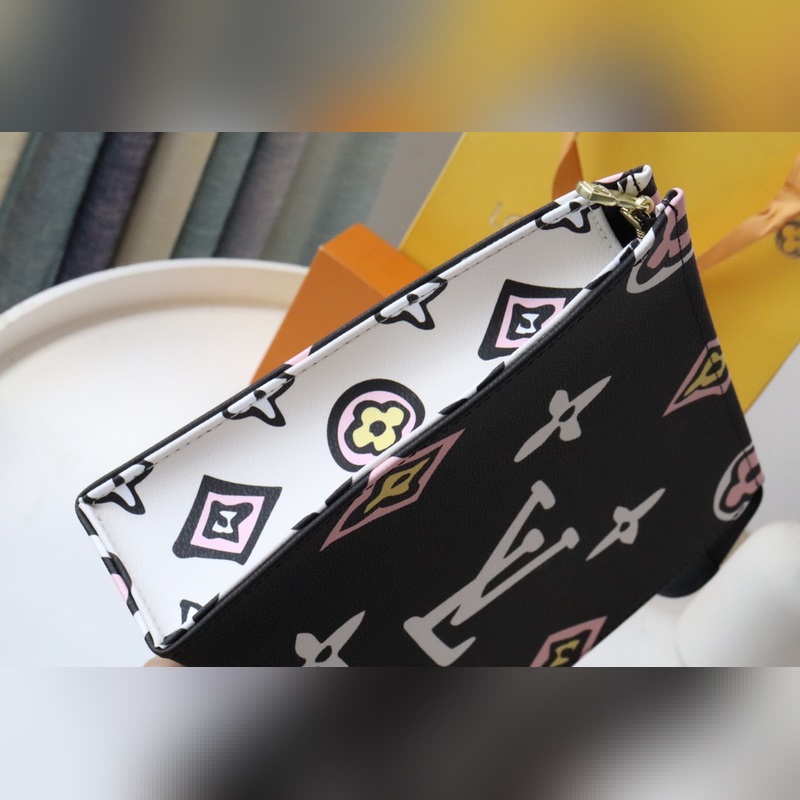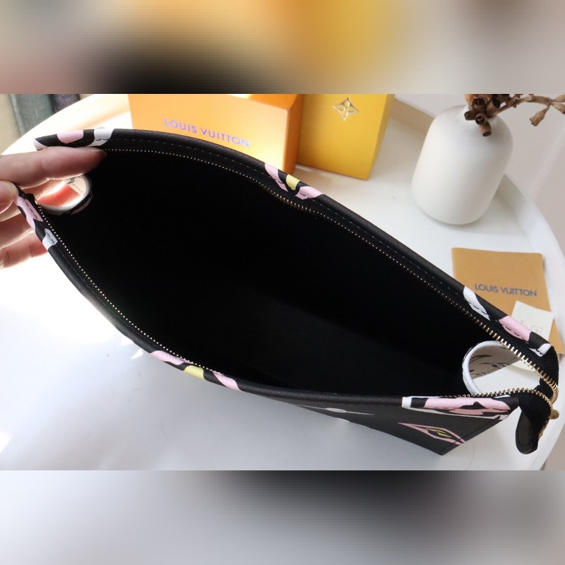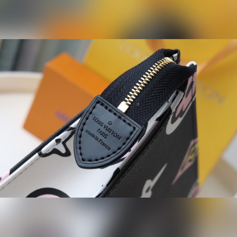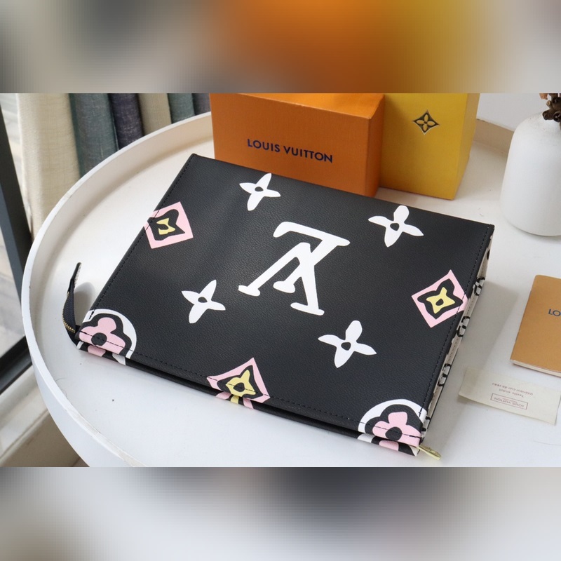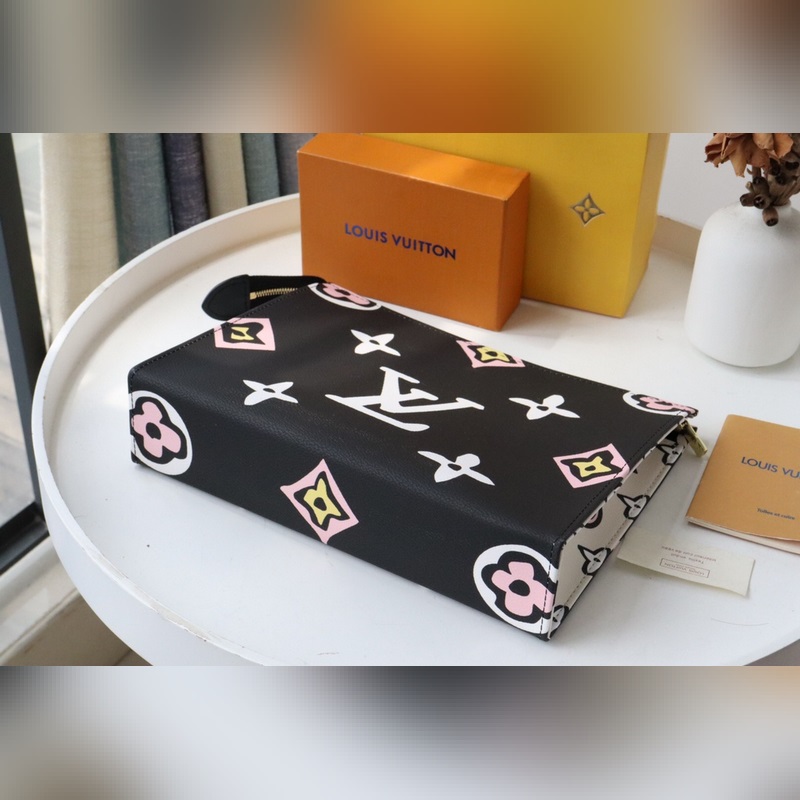 26 Toalettitarvikelaukku Muistelee Louis Vuittonin vuoden 1924 kannessa olevia elementtejä, suurennettu ja käsinmaalattu.