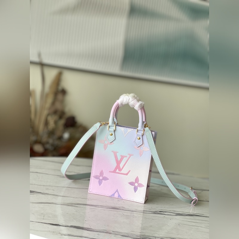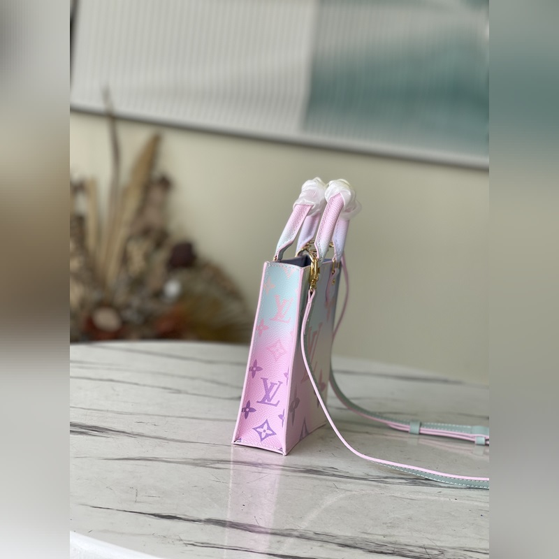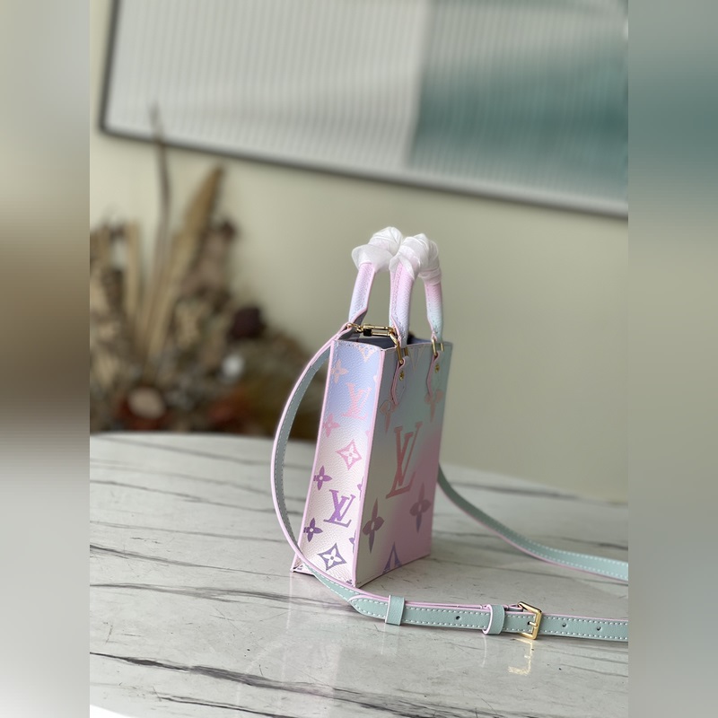 Gradienttisävyt jäljittelevät nousevan auringon hehkua. Kevyt siluetti on saanut inspiraationsa klassisesta Sac Plat -laukusta, jossa on runsaasti sisätilaa, nahkainen olkahihna ja yläkahva. Mitat: 14 x 17 x 5 cm