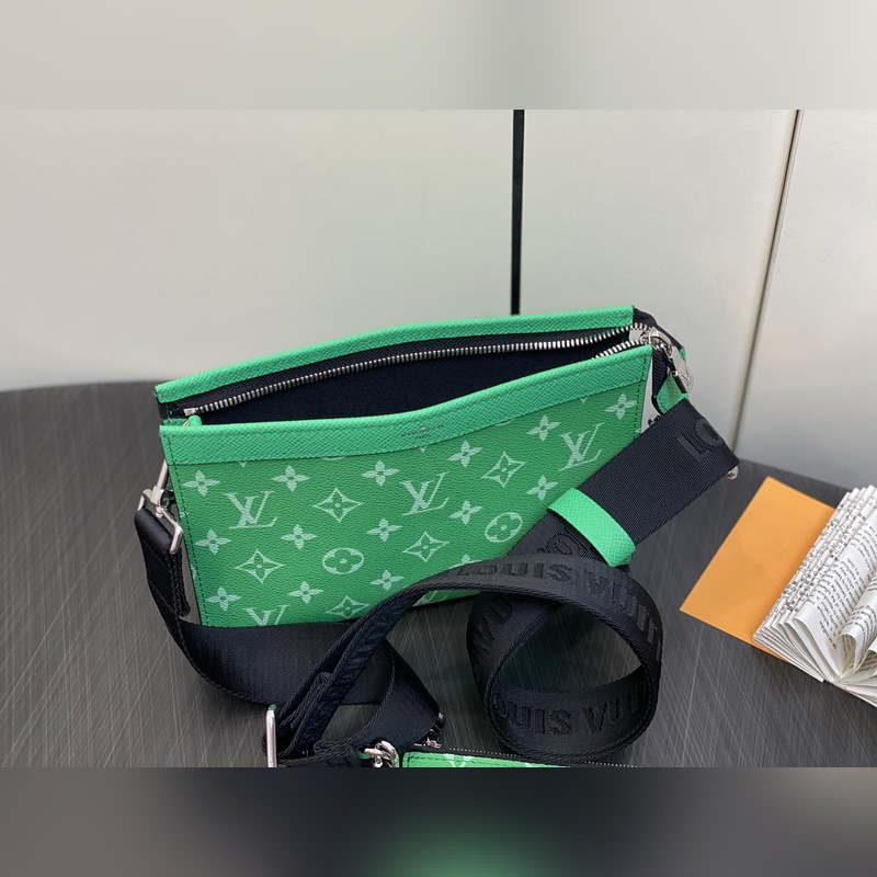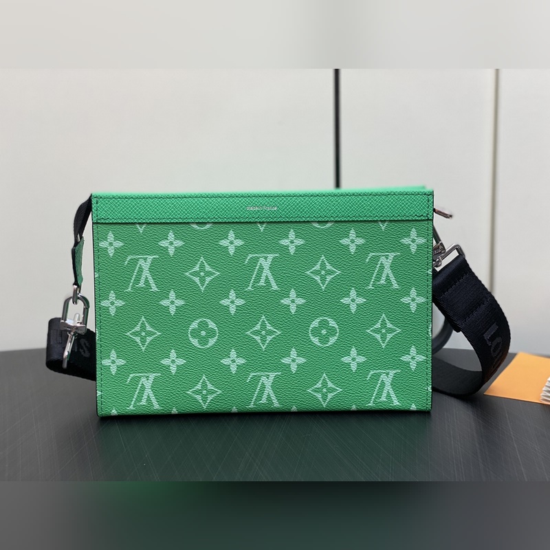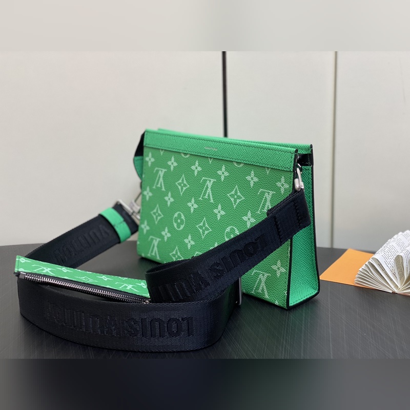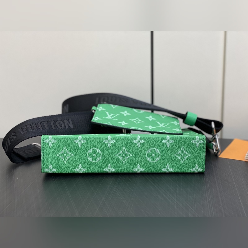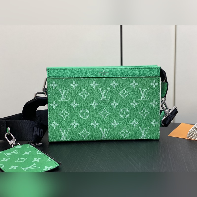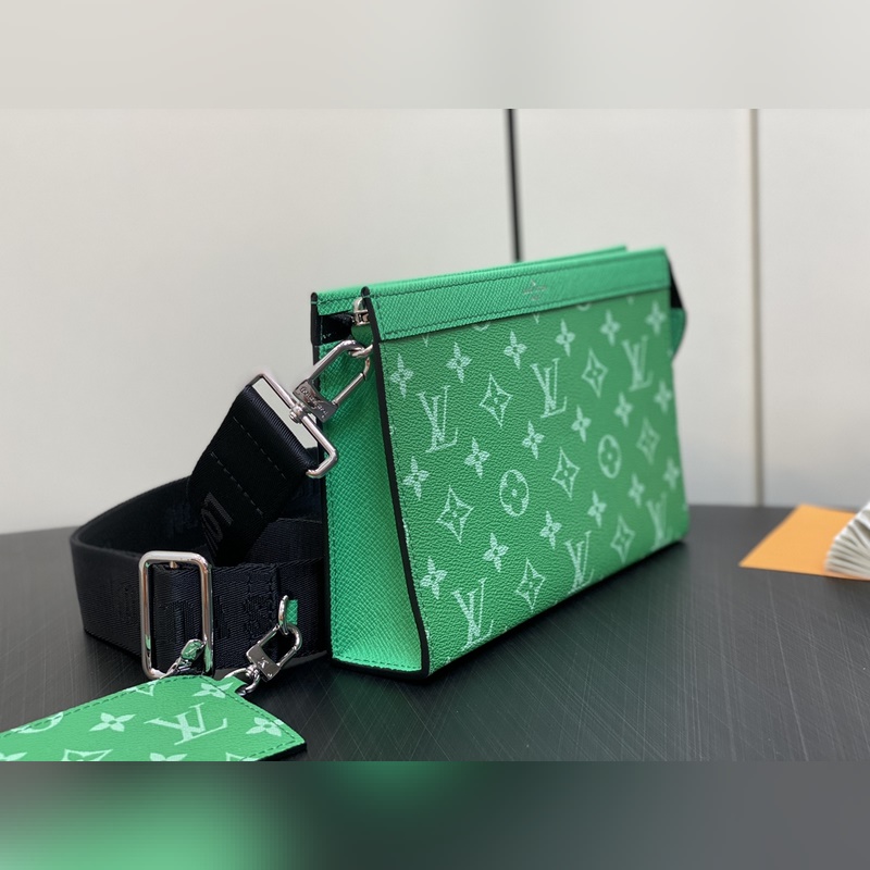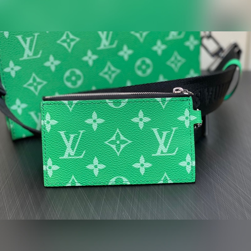 LV M83099 Vihreä Miesten laukku Kaksiosainen Setti Kolmiosainen Setti Gaston Wearable Wallet -käsilaukku on peräisin Pochette Voyage -kytkimestä ja se on leikattu Monogram Shadow -nahasta sopimaan matkapuhelimeesi ja muihin matkatarpeisiin. Irrotettava ja säädettävä olkahihna on varustettu irrotettavalla korttitelineellä, joka on ihanteellinen paikka kontaktittomien maksulaitteiden tai kuljetuskorttien sijoittamiseen. Mitat: 22 x 14,5 x 4,5 cm.
