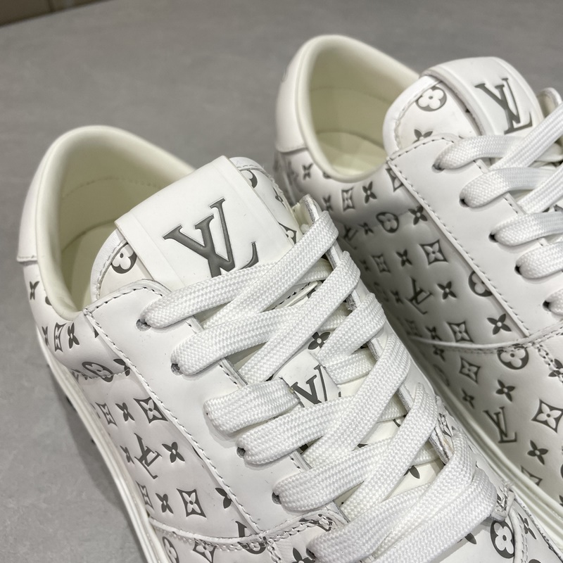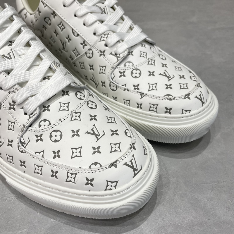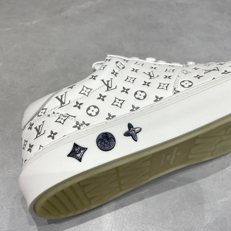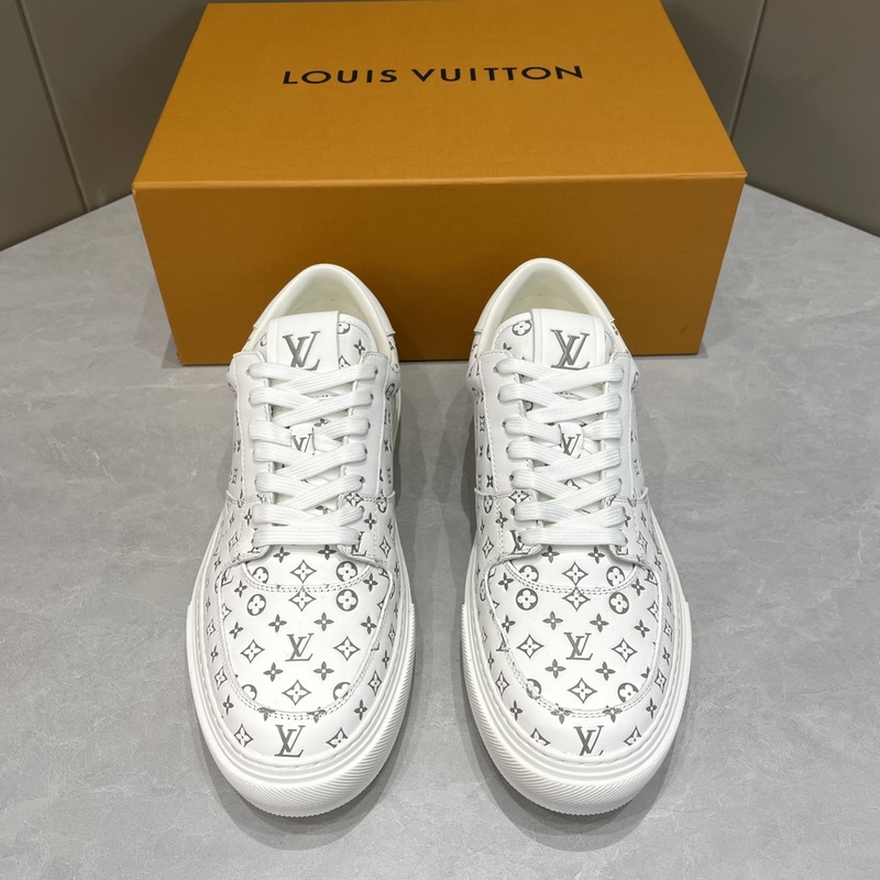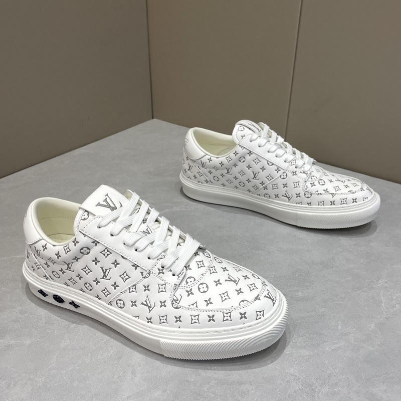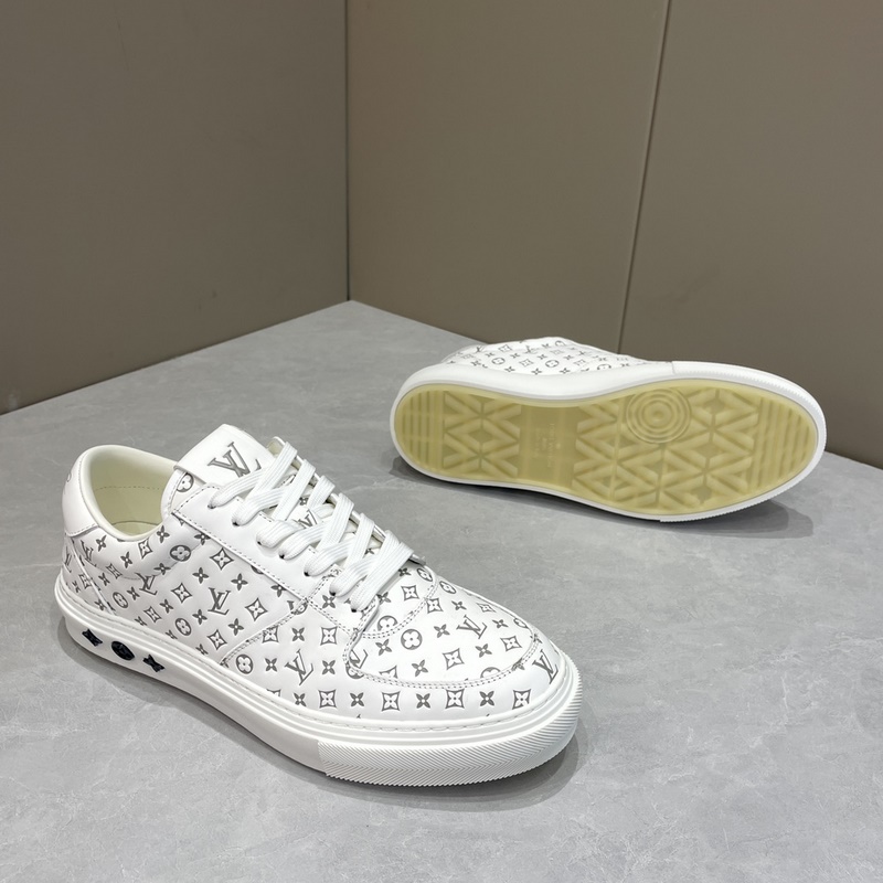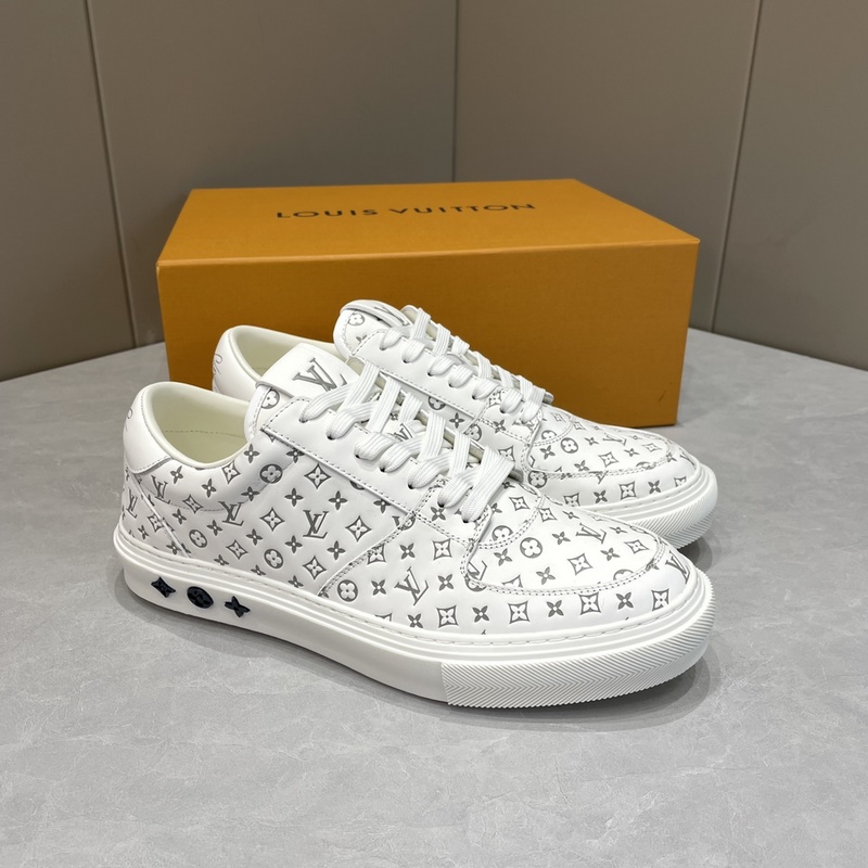 Uudet huippuluokan vapaa-ajan tennarit miehille, valmistettu tuodusta korkealaatuisesta lehmännahasta, alkuperäinen kumipohja, kulutusta kestävä ja mukava, kumipohja koristeltu Monogram-kukilla, vasikkavuori, monipuolinen klassinen tyyli