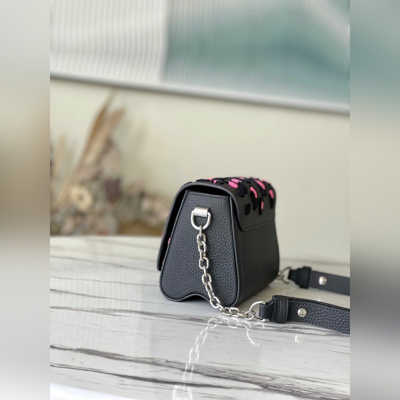 Eteenpäin sisäänpääsy Wild at Heart -kapselikokoelmaan. Täysjyvä Taurillon-nahka puhuu käsityötaidosta, kun taas herkkä kirjonta ja tuftaus antavat leopardikuviolle dynaamisen tekstuurin yhdistettynä ketjuun ja nahkaiseen olkahihnaan, mikä tekee siitä trendikkään syksyn painopisteen. Mitat: 19 x 15 x 9 cm