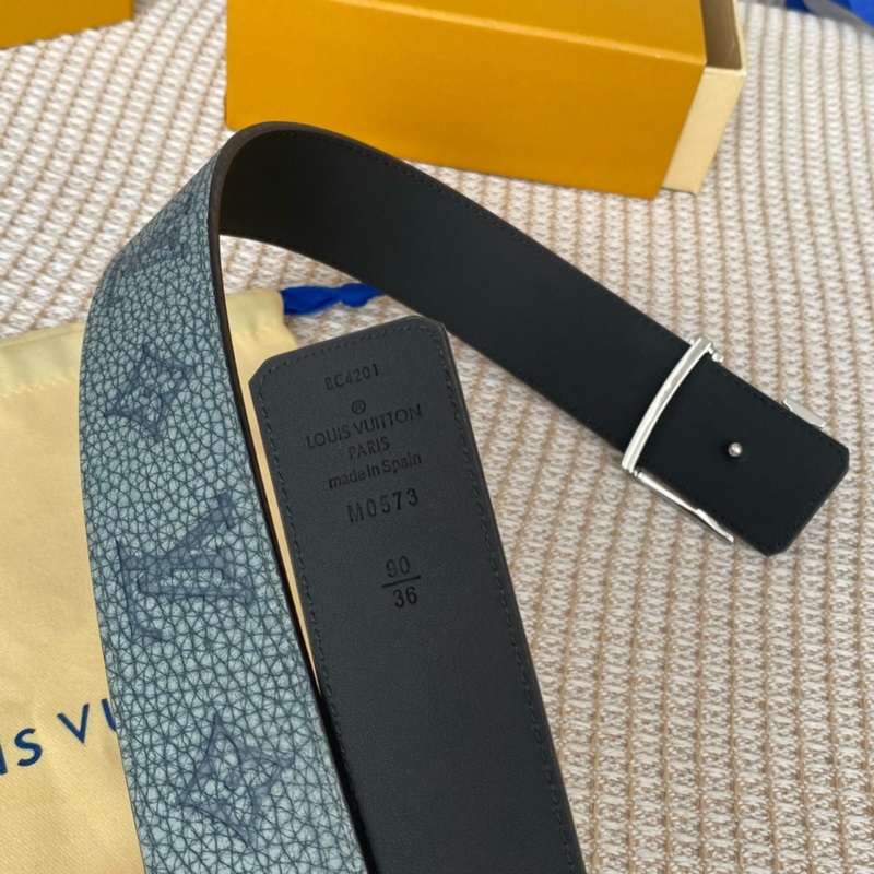 Uusi LV Shape -kaksipuolinen vyö on valmistettu uudesta togo-pestystä vasikannahasta, jossa on kohokuvioitu ja silkkipainettu suuri sininen logokuvio, ja siihen on yhdistetty mattapintainen LV Shape -solki. Tyylikäs vasikannahka voidaan kääntää ympäri ja käyttää tyylikkäästi, sopii niin juhla- kuin vapaa-aikaan