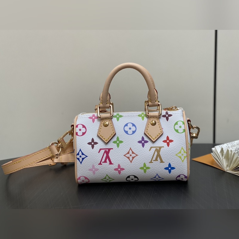 Tämän vuoden uusi M13391 valkoinen tyynylaukku speedy-sarja LV Takashi Murakami yhteinen NANOSPEEDY käsilaukku M13406 musta Tässä Nano Speedy -käsilaukussa yhdistyvät Monogrammi-kangas- ja lehmännahan koristepainatus, 33 värikästä väriä tulkitsemaan valkoista kolmiväriä ja mustaa kolmiväriä. Se on suosittu kaikkialla maailmassa, ja julkkikset rakastavat sitä. 16x10x7,5 cm.