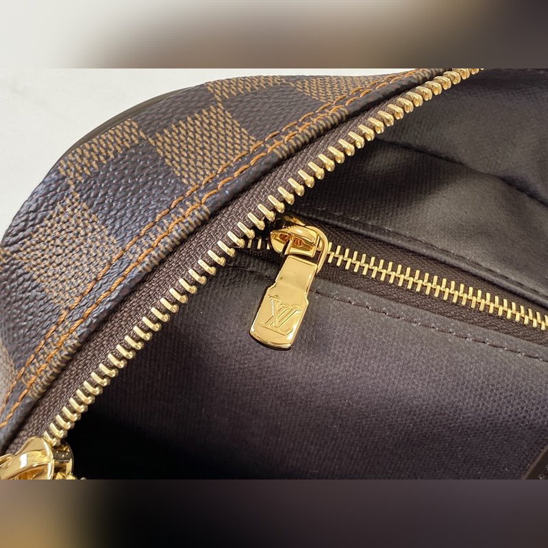 Tässä Damier Canvas -kylpytuotelaukussa on sisätasku, jossa on pestävä vuori. Sen hieman pyöristetty muoto mahdollistaa sen helpon säilyttämisen matkalaukussa.