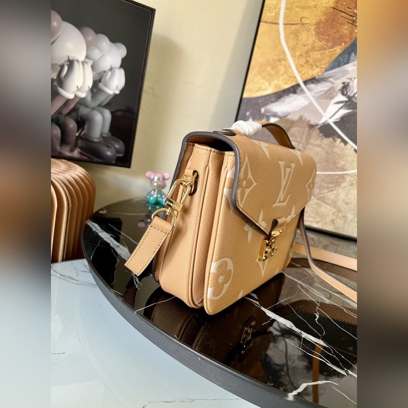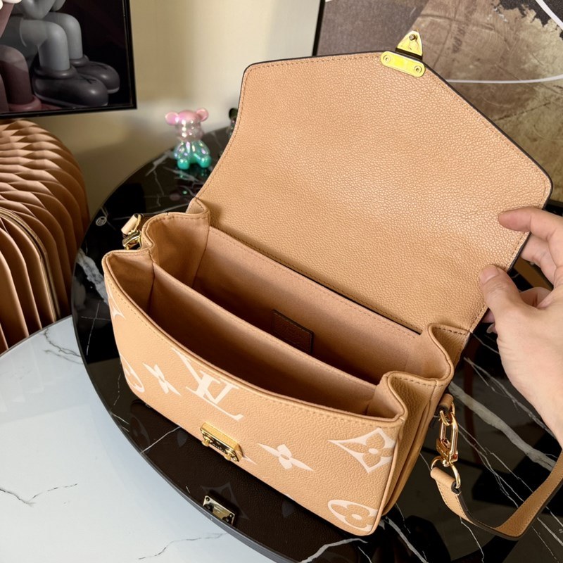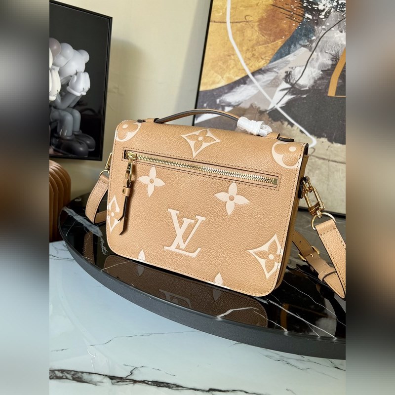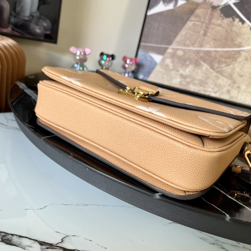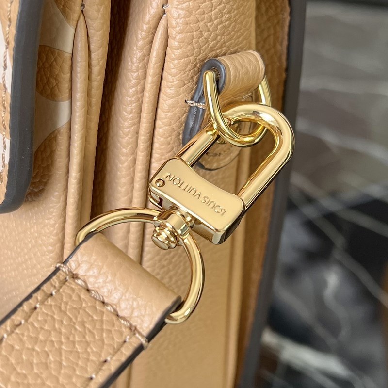 Kevät 2022 -sarjan Pochette Métis -käsilaukkussa on käytetty Monogram Empreinte -nahkaa korostaakseen kiiltävää kirjailua, korostaen merkin hienoa ammattitaitoa ja perinteisten kovien koteloiden tikattua sisustusta. Yläkahva ja irrotettava olkahihna mahdollistavat monenlaiset kantotavat.